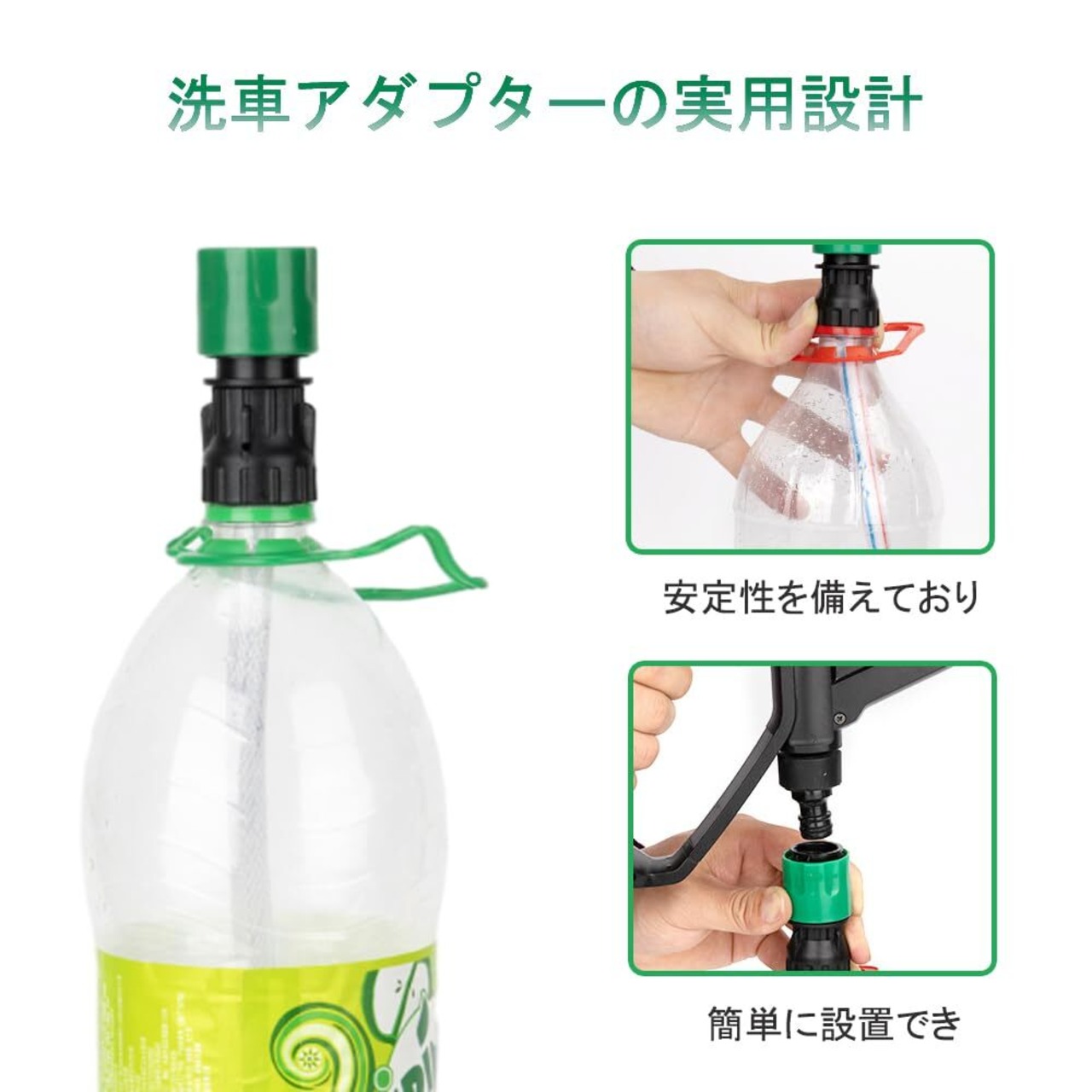 高圧ホースコネクター 車用高圧洗浄機ホース 洗車用ファスト ノズル接続チューブ ペットボトル 持ち運びに便利 ペットボトル対応 高圧洗車機アダプター (グリーン)