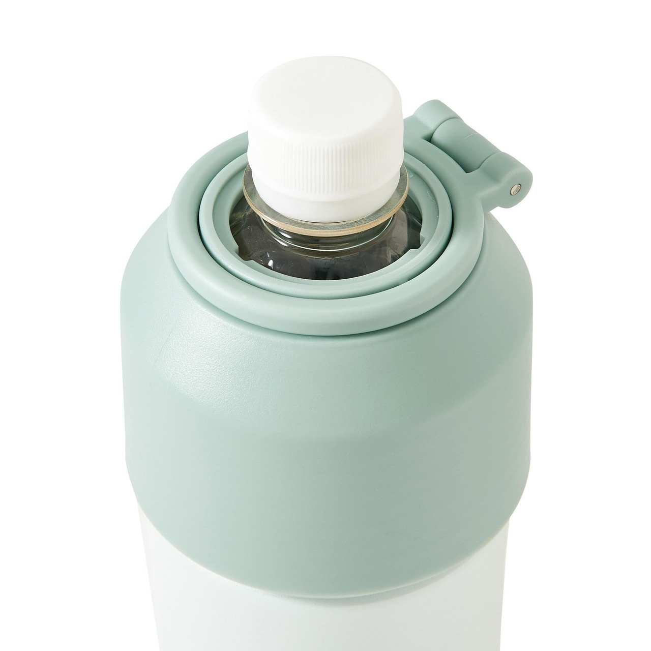 注意事項:電子レンジ:不可 オーブン:不可 食器洗浄機:不可 おおよそ500~650ml のペットボトルに対応しておりますが、本製品と合うサイズのペットボトルをご使用ください。ペットボトルがきちんとはまらない形状の場合は無理に使用しないようご注意ください。 飲み物の保温・保冷以外には使用しないでください。 本製品はペットボトル専用です。本体に直接飲み物を入れないでください。 二重構造で本体の内側と外側の間が真空状態になっていることにより熱が伝わりにくいため飲み物の温度が変化しにくくなります。本体からフタを外し、ペットボトルを入れ、フタを本体に装着してご使用ください。 底にある滑り止めにより、ペットボトルのキャップが開け閉めしやすくなります。キャップが開け閉めしにくい場合はペットボトルを底面に押し当てながら開け閉めしてください。