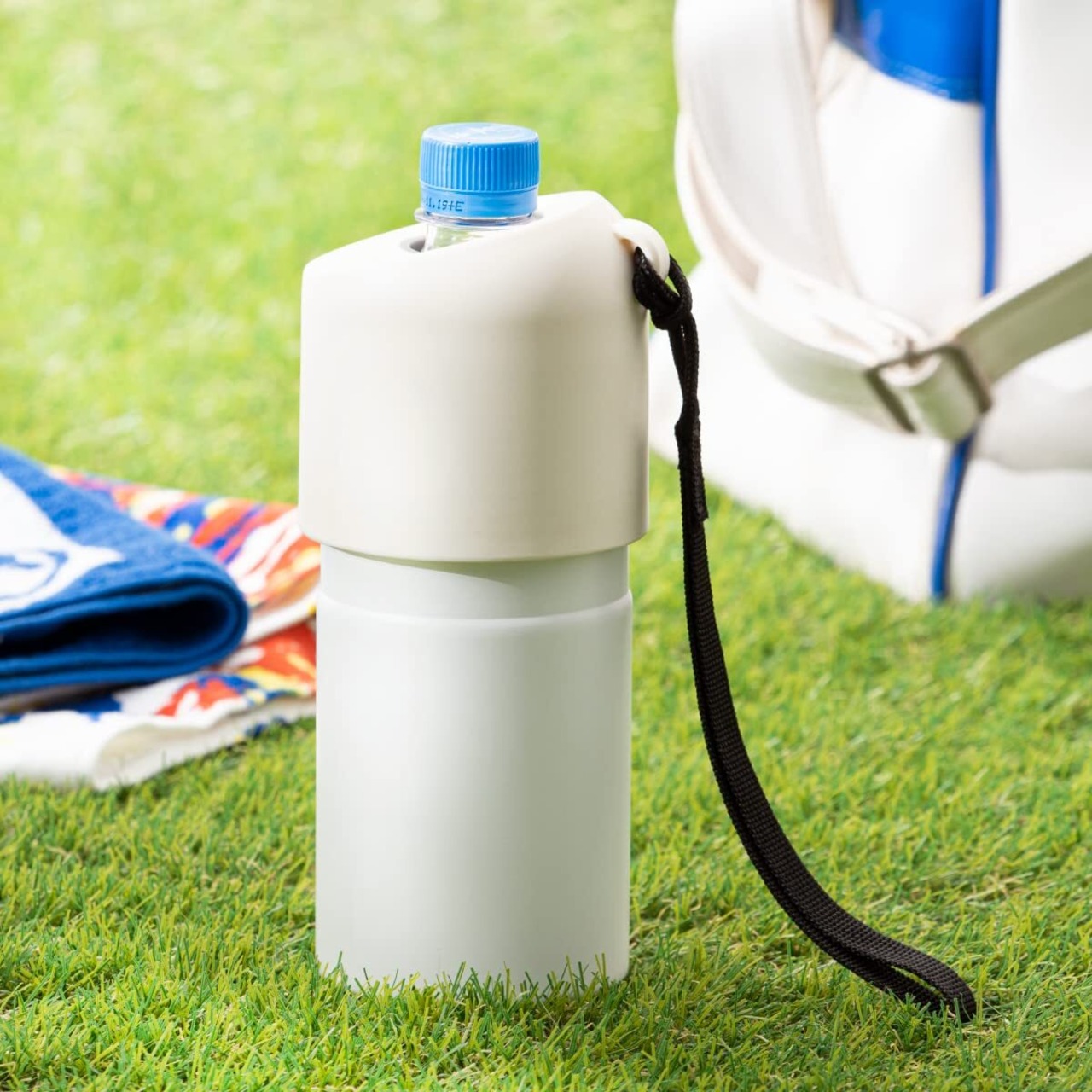 500mlから650mlサイズのペットボトルに対応。便利なストラップ付き