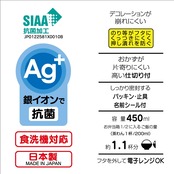 材質:フタ:AS樹脂、本体・仕切:ポリプロピレン、止具:ABS樹脂、パッキン:シリコーンゴム、使用抗菌剤の種類:無機抗菌剤