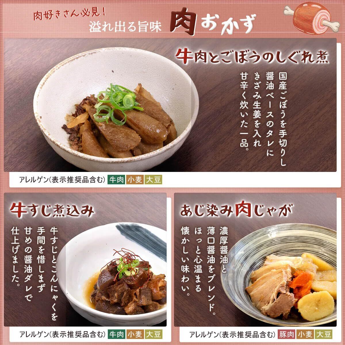 おかず の定番 肉じゃが 鮭の塩焼き や 丁寧に味付された 煮物 筑前煮 等 いろんな種類の 和風惣菜 が入った おかずセット 。 毎日の ご飯 のお供 や お弁当 の おかず 、 忙しい時の 時短 ごはん にも おすすめ 。