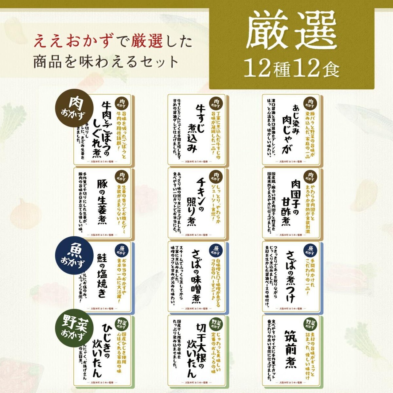 レトルト食品 詰め合わせ おかず 肉 魚 野菜 惣菜 ええおかず 12種12食 セット レトルト 常温保存 レンジ 湯煎 食品 備蓄 保存食