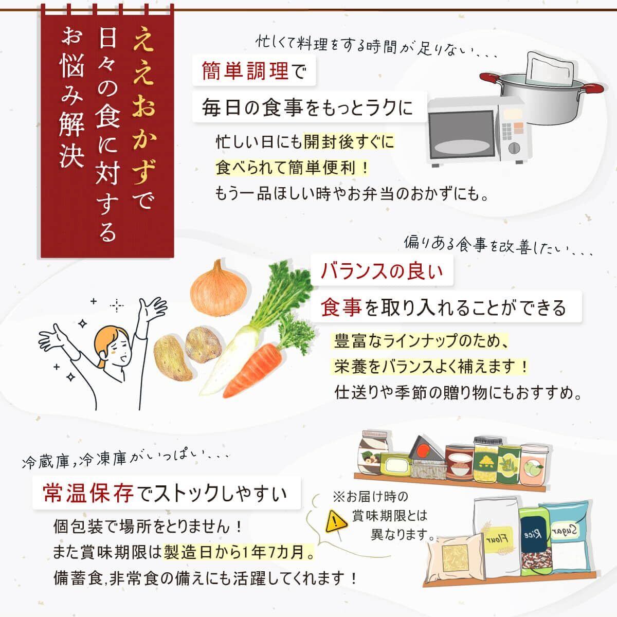 ええおかず は 余分な 調味料 は一切使用せず 食材 本来の味を存分に生かし、 まるで 作り立てのような味わいの美味しさをお召し上がりいただけます。 ええもん広場 オリジナル 和風 レトルト惣菜 詰め合わせセット