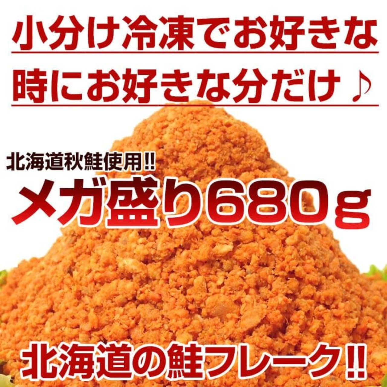 北海道の秋鮭を使用した 鮭フレーク 業務用 メガ盛り680gです!小分け冷凍でお好きな分だけお楽しみお弁当・おにぎり・チャーハン・お惣菜に大活躍!