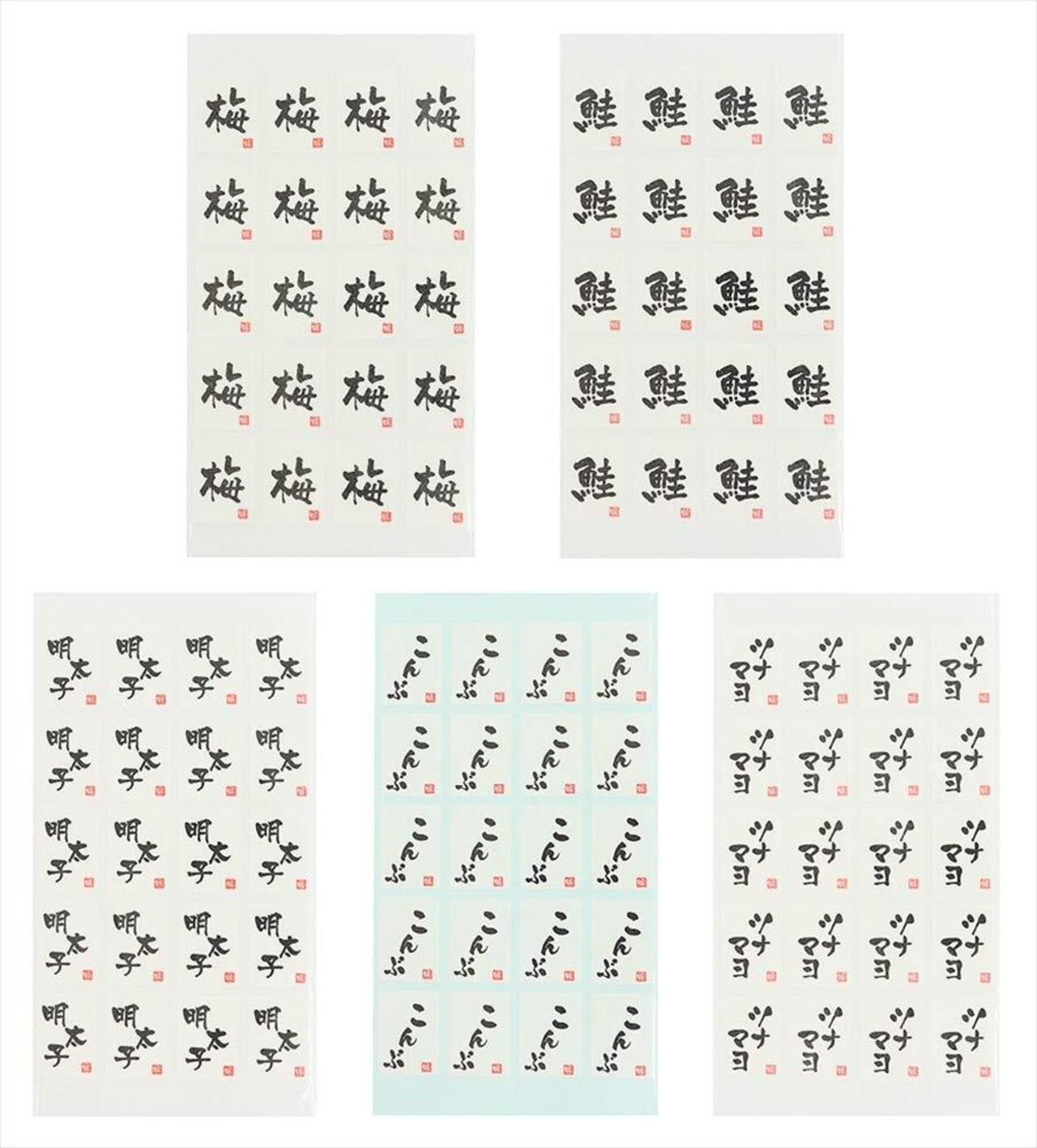 カミイソ産商 日本製 販促シール エースラベル 惣菜 おにぎり ラベル 和紙 5点セット (梅・鮭・明太子・こんぶ・ツナマヨ) 各100枚入