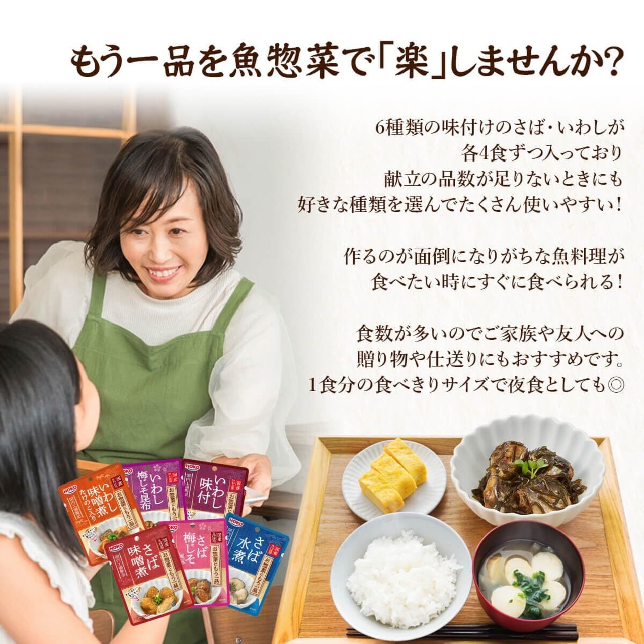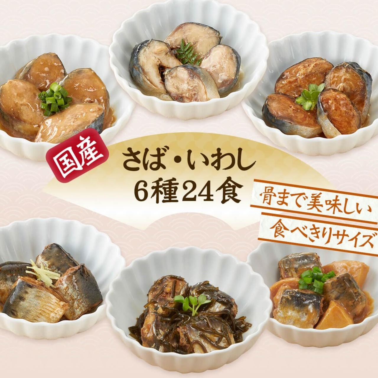 レトルト 魚 惣菜 おかず 国産 サバ イワシ 煮魚 6種24食 詰め合わせ セット 宝幸 レトルト食品 常温 備蓄 保存食 国産乾燥野菜