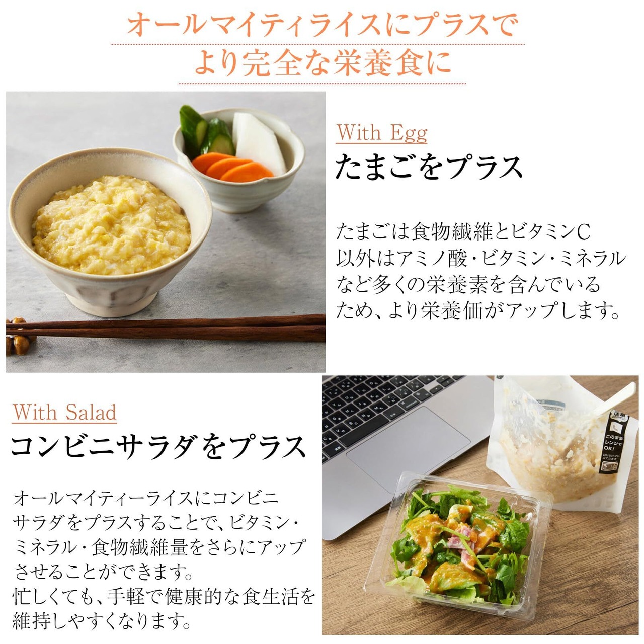 タンパク質、炭水化物、脂質のPFCバランスのとれた「オールマイティライスは日本の食の素材本来の旨味を感じられる主食の新しいカタチです。