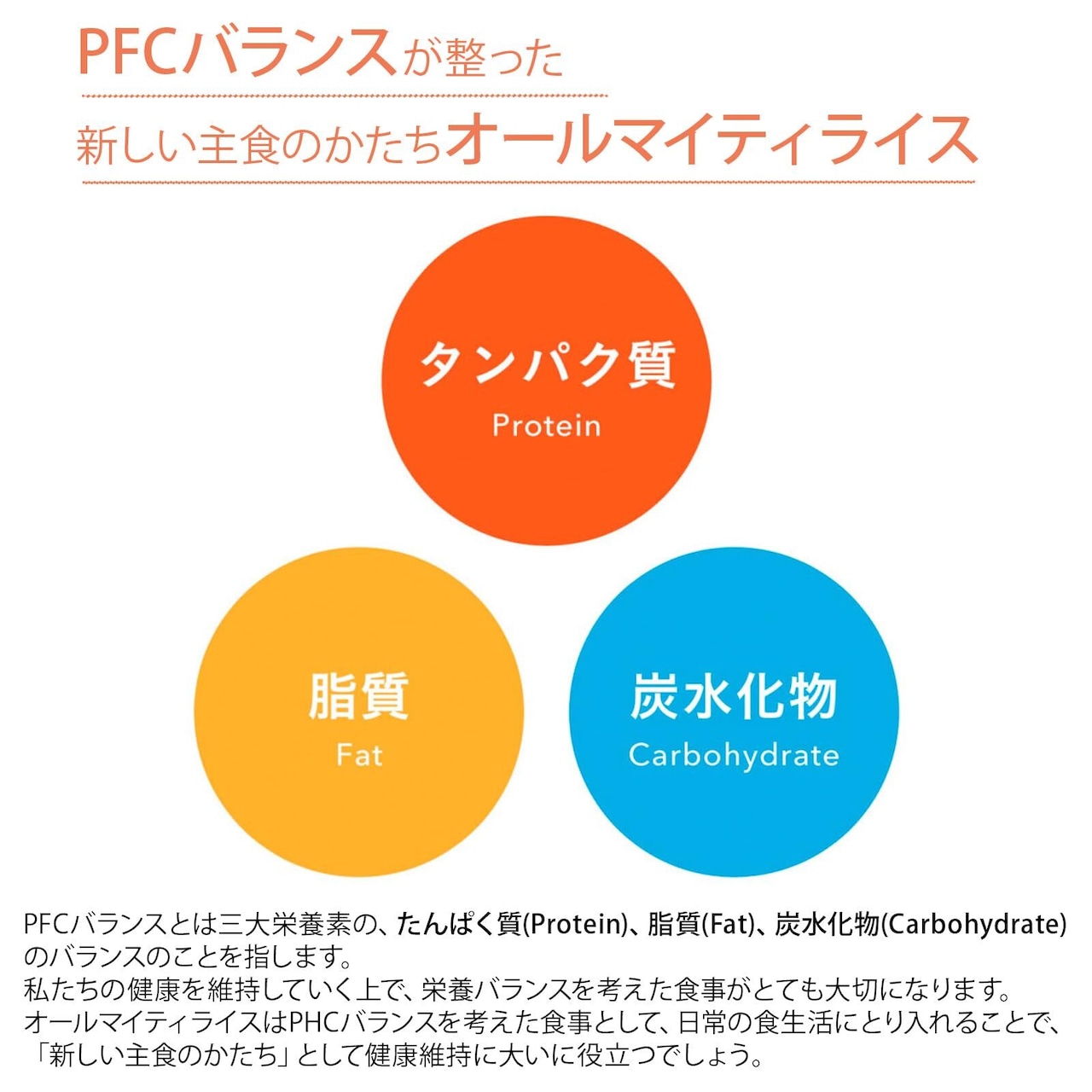 タンパク質、炭水化物、脂質のPFCバランスのとれた「オールマイティライスは日本の食の素材本来の旨味を感じられる主食の新しいカタチです。