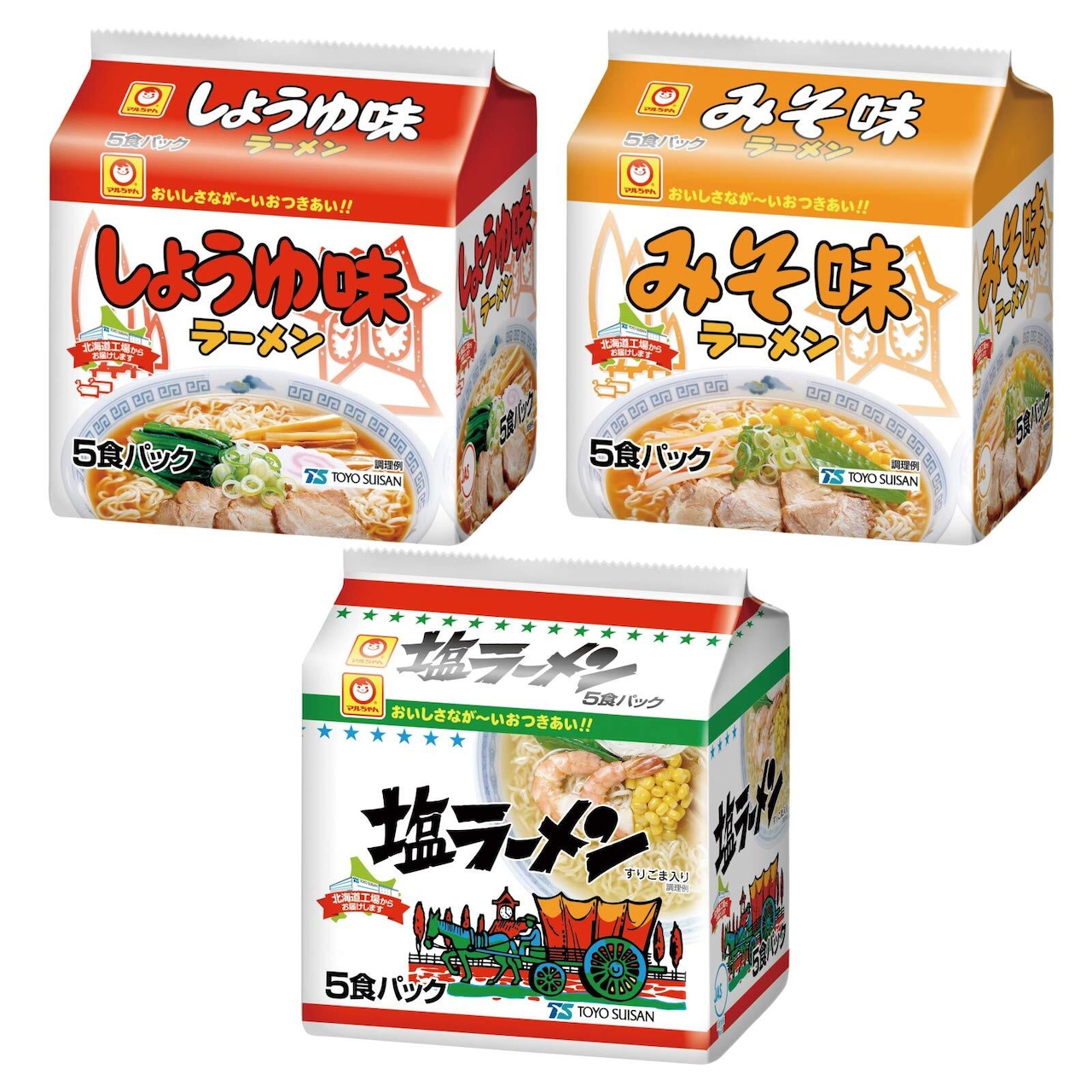 【北海道限定】マルちゃんラーメン 3種(5食パック×3)計15食 しょうゆ味ラーメン、みそ味ラーメン、塩ラーメン
