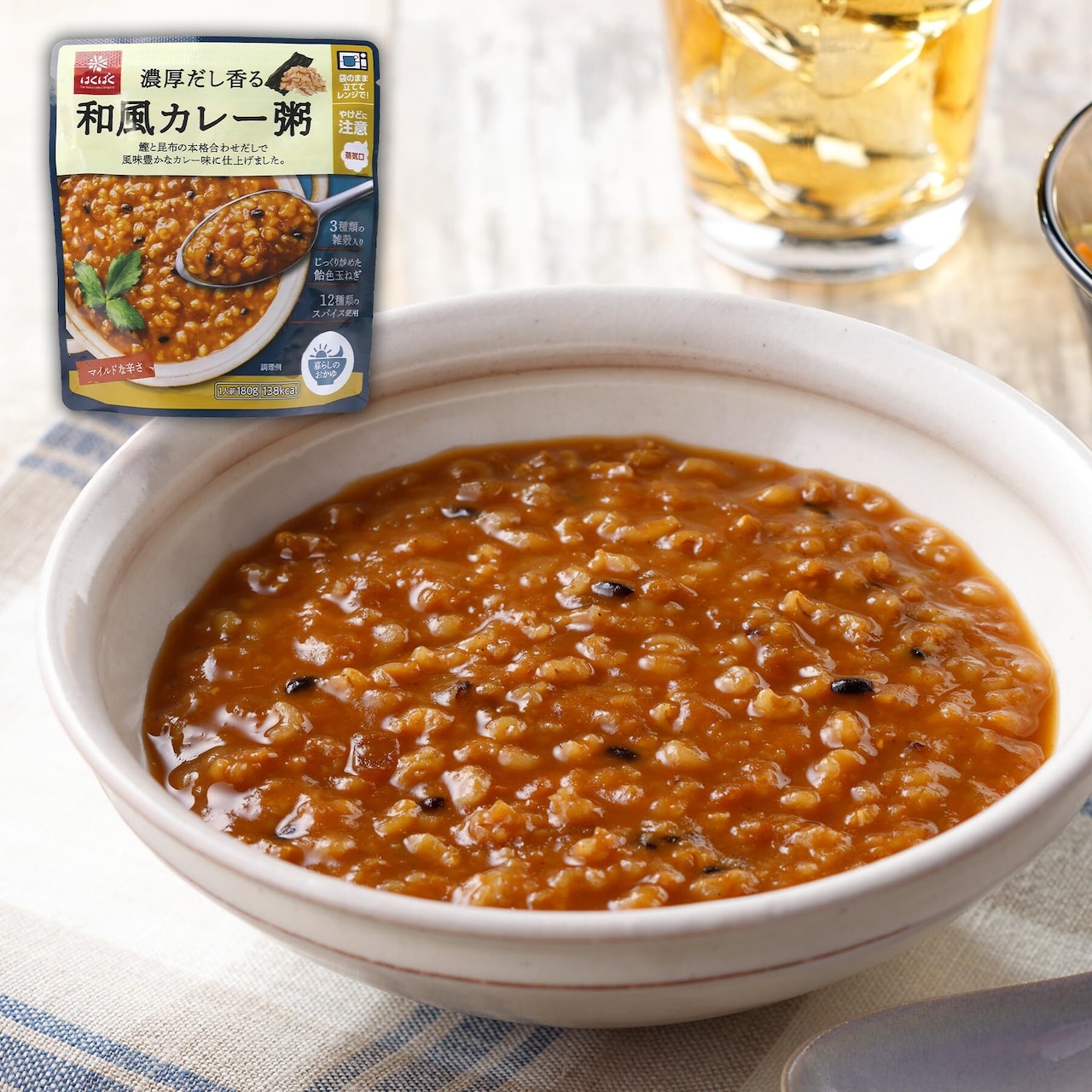 【チゲ粥】鶏卵(国産)、海鮮チゲ風味調味料(貝エキスパウダー、沖アミ・エビ抽出エキスパウダー、砂糖、デキストリン、ガーリックパウダー、その他)、うるち米(国産)、米粒麦、しょうゆ、発芽玄米(玄米(国産))、トマトペースト、チキンブイヨンパウダー/調味料(アミノ酸等)、増粘剤(加工でん粉)、カラメル色素、(一部に卵・えび・小麦・乳成分・大豆・鶏肉を含む) 【コムタン粥】ビーフエキス(国内製造)、うるち米(国産)、コムタン風味調味料(ビーフエキスパウダー、砂糖、デキストリン、粉末油脂、ガーリックパウダー、その他)、米粒麦、発芽玄米(玄米(国産))、ビーフオイル、食塩/調味料(アミノ酸等)、(一部に乳成分・牛肉・大豆を含む) 【和風カレー粥】うるち米(国産)、オニオンソテー、トマトピューレー、米粒麦、発芽玄米(玄米(国産))、カレー風味調味料(砂糖、デキストリン、カレーパウダー、オニオンエキスパウダー、チキンエキスパウダー、粉末油脂、たん白加水分解物、コーンスターチ、その他)、かつお節エキス、しょうゆ、こんぶだし、動物性たん白加水分解物、黒米(国産)、みりん/トレハロース、調味料(アミノ酸等)、香料、カラメル色素、(一部に乳成分・小麦・大豆・鶏肉・豚肉・ごま・ゼラチンを含む) 【トマトカレー粥】トマトピューレー(国内製造)、うるち米(国産)、米粒麦、オニオンソテー、ミルポワペースト、カレー風味調味料(砂糖、デキストリン、カレーパウダー、オニオンエキスパウダー、チキンエキスパウダー、粉末油脂、たん白加水分解物、コーンスターチ、その他)、発芽玄米(玄米(国産))、黒米(国産)、動物性たん白加水分解物、全粉乳、食塩/トレハロース、調味料(アミノ酸等)、香料、カラメル色素、(一部に乳成分・小麦・鶏肉・大豆・鶏肉・豚肉・ごま・ゼラチンを含む)