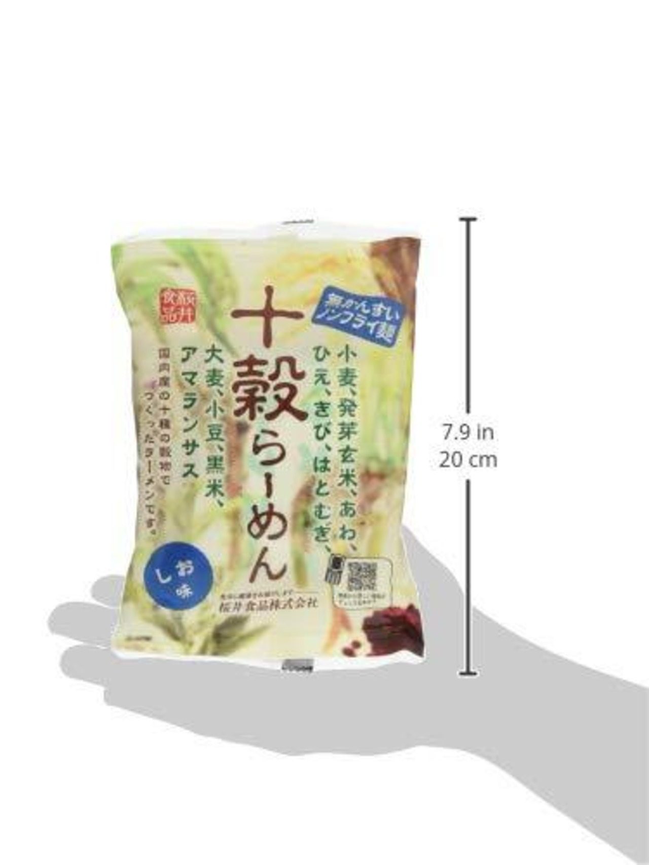 北海道産契約栽培小麦粉を主原料に、国内で栽培された十種類の穀物(小麦粉・黒米粉・小豆粉・発芽玄米粉・大麦粉・もちきび粉・もちあわ粉・うるちひえ粉・アマランサス粉・はと麦粉)を配合して作られた、油で揚げないノンフライめんです。添付のスープは化学調味料を使用していません。