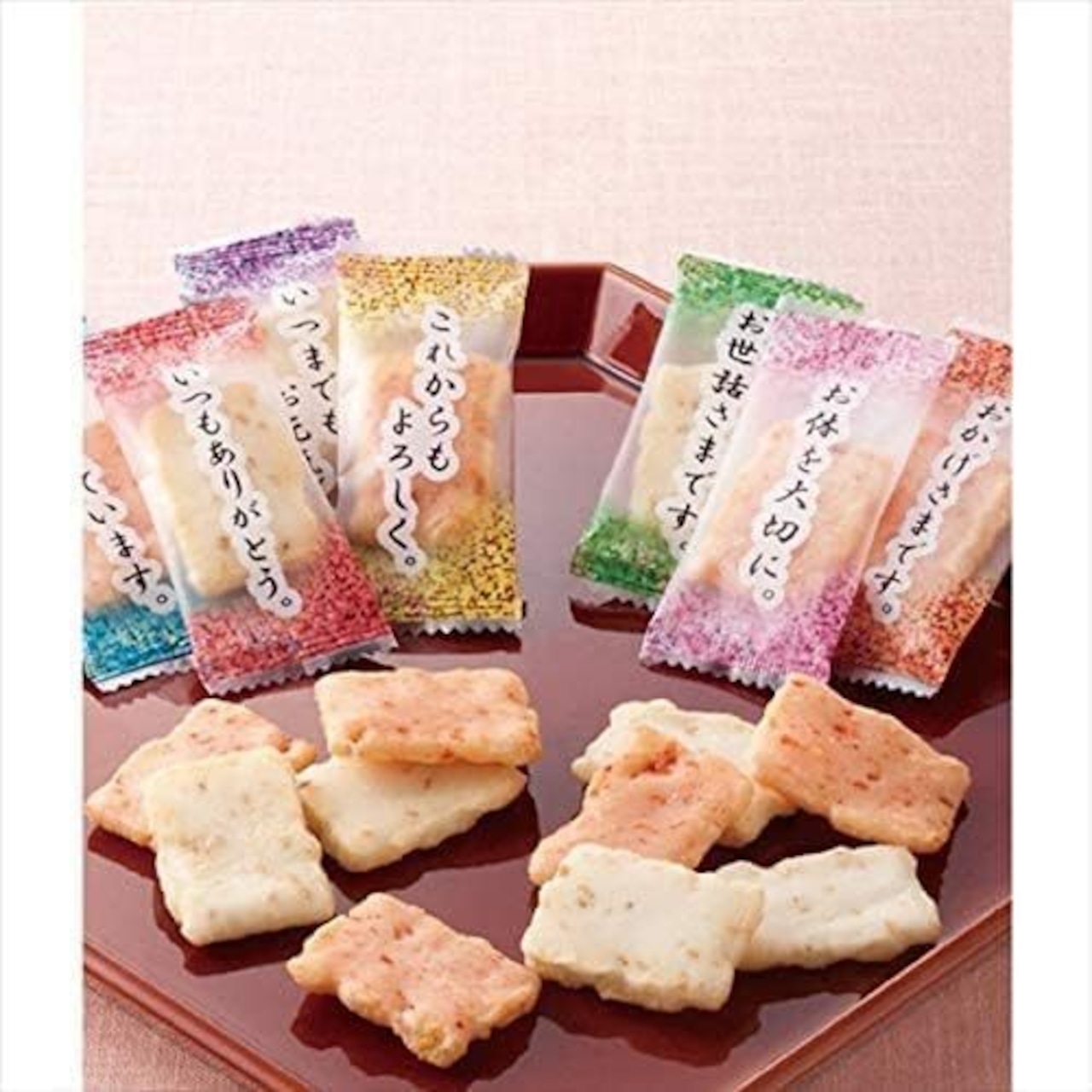 普段言葉では言い表せない「感謝のきもち」を個包装にデザインしたおかきの詰め合わせです。退職、転職 転勤などのお返しにピッタリです。