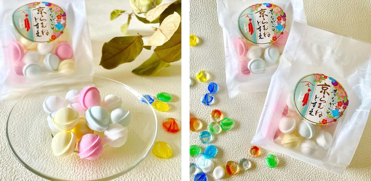 京菓子メーカーが作るラムネらしい“パッケージラベル”となっています。
