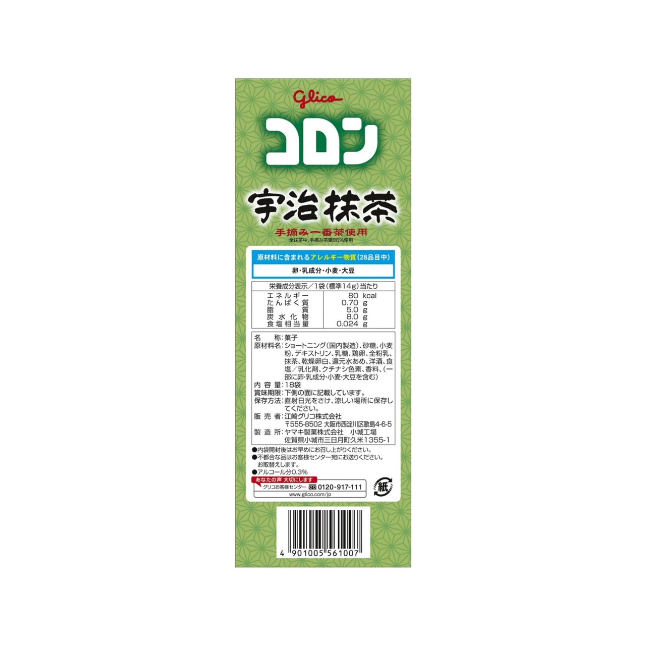 グリコ 宇治抹茶コロン 18袋 個包装 京都宇治抹茶 ご当地お菓子 グリコ コロン