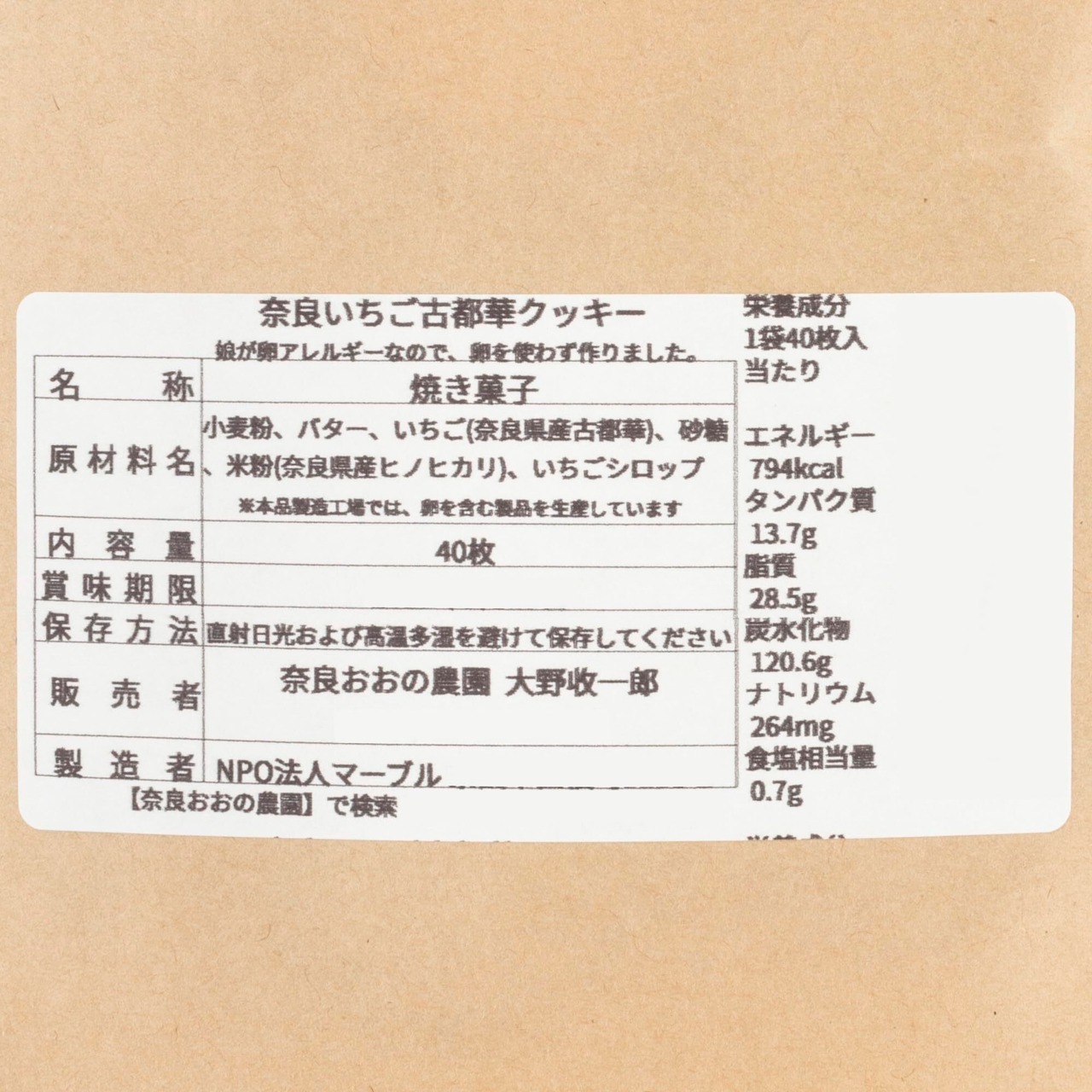 奈良おおの農園 卵不使用/奈良限定いちご古都華の「いちごクッキー」40枚入り
