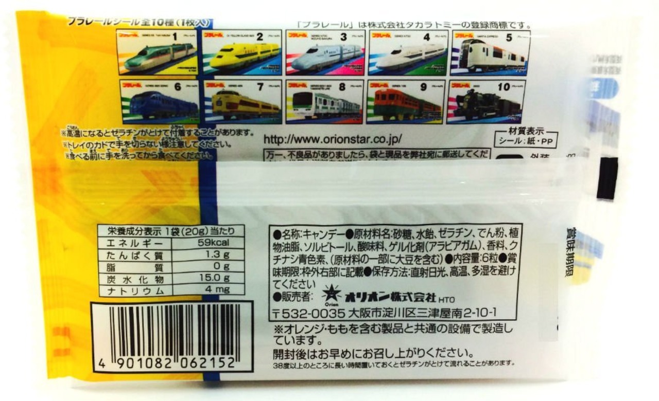 タカラトミーの代表的な男児玩具『プラレール』パッケージのサイダー味グミキャンディです。