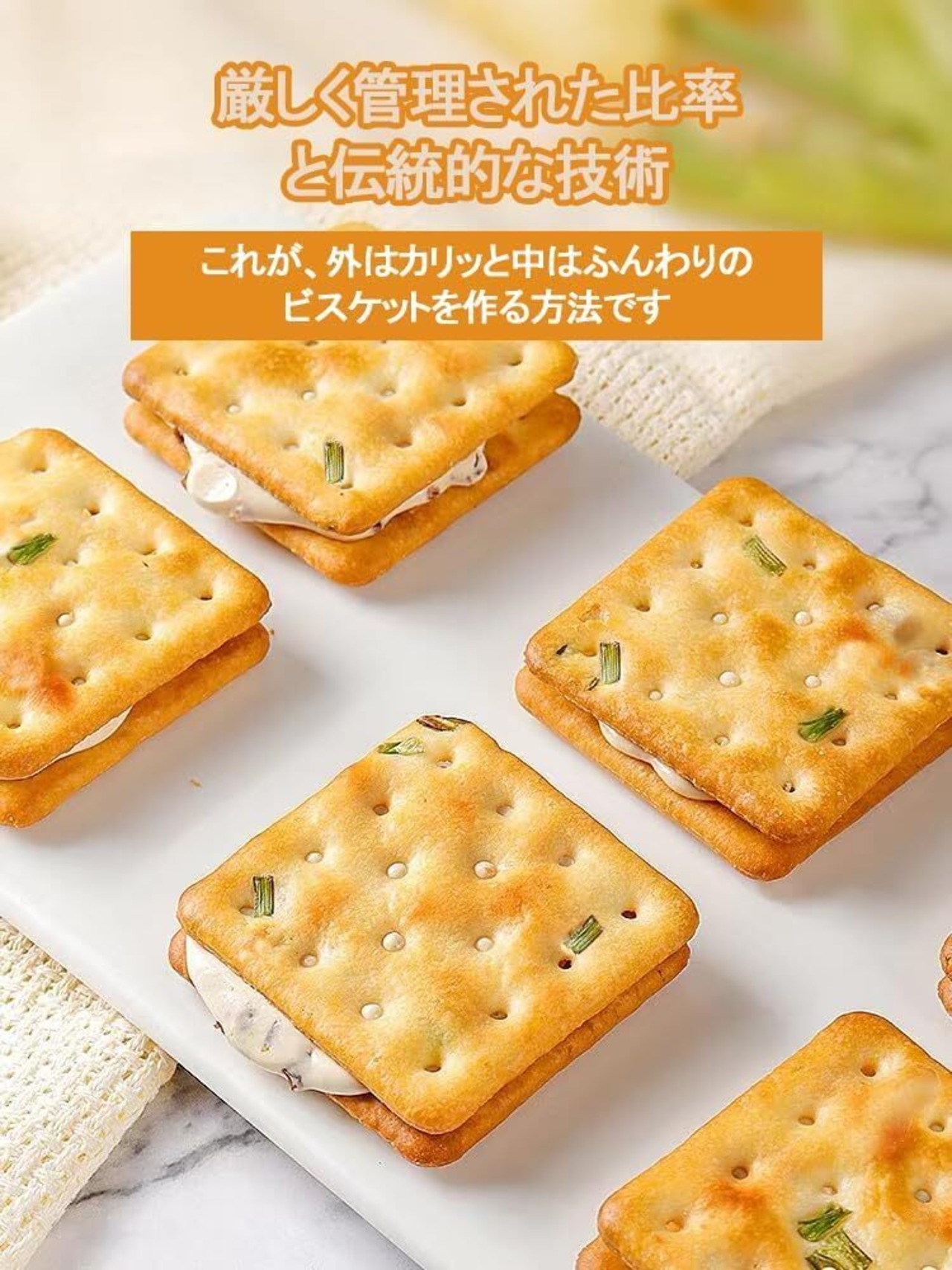【塩味と甘さの絡み合い】伝統的な職人技のビスケット、黄金色、乾燥したサクサクした食感の表面、エシャロットの香りが強く、外はサクサク、中は柔らかい風味を生成するのに十分なクリーミーなサンドイッチは死ぬほどです、あなたは電子レンジで数秒間チンすることができ、中心部はさらに柔らかく、甘い風味になります。