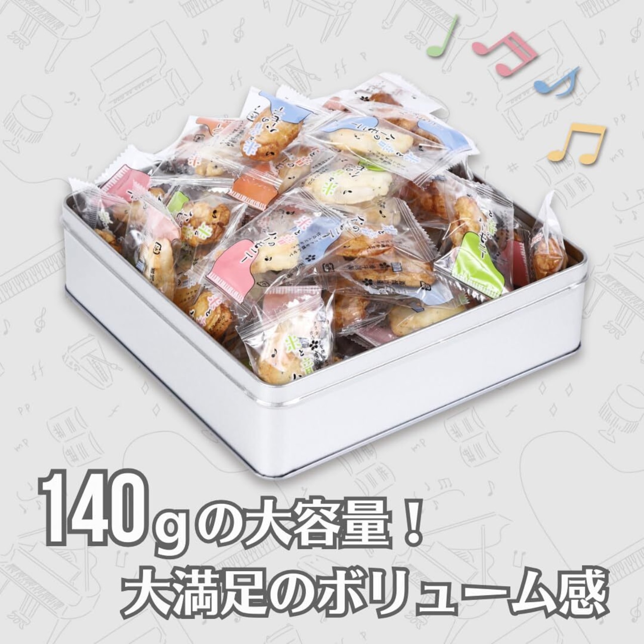 米と音のハーモニー 缶入りおかき 大容量 140g 音楽会・音楽教室 ギフトや記念品向き 個包装