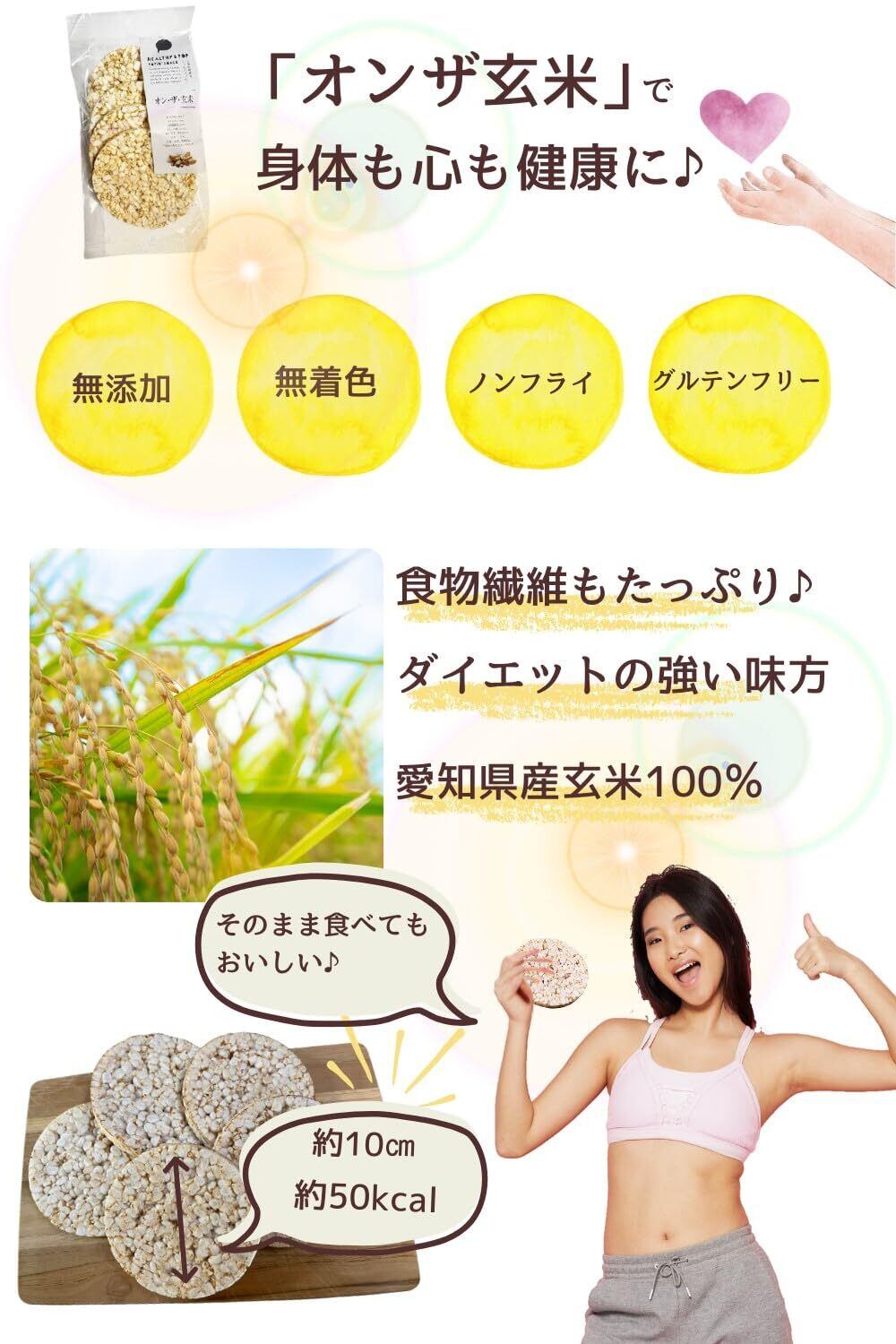 HEALTHY&POP オン・ザ・玄米 65g ライスケーキ ポン菓子 玄米 無添加 無塩 グルテンフリー 低GI 国産 完全自社製造 トレーニー (5枚入) 6袋