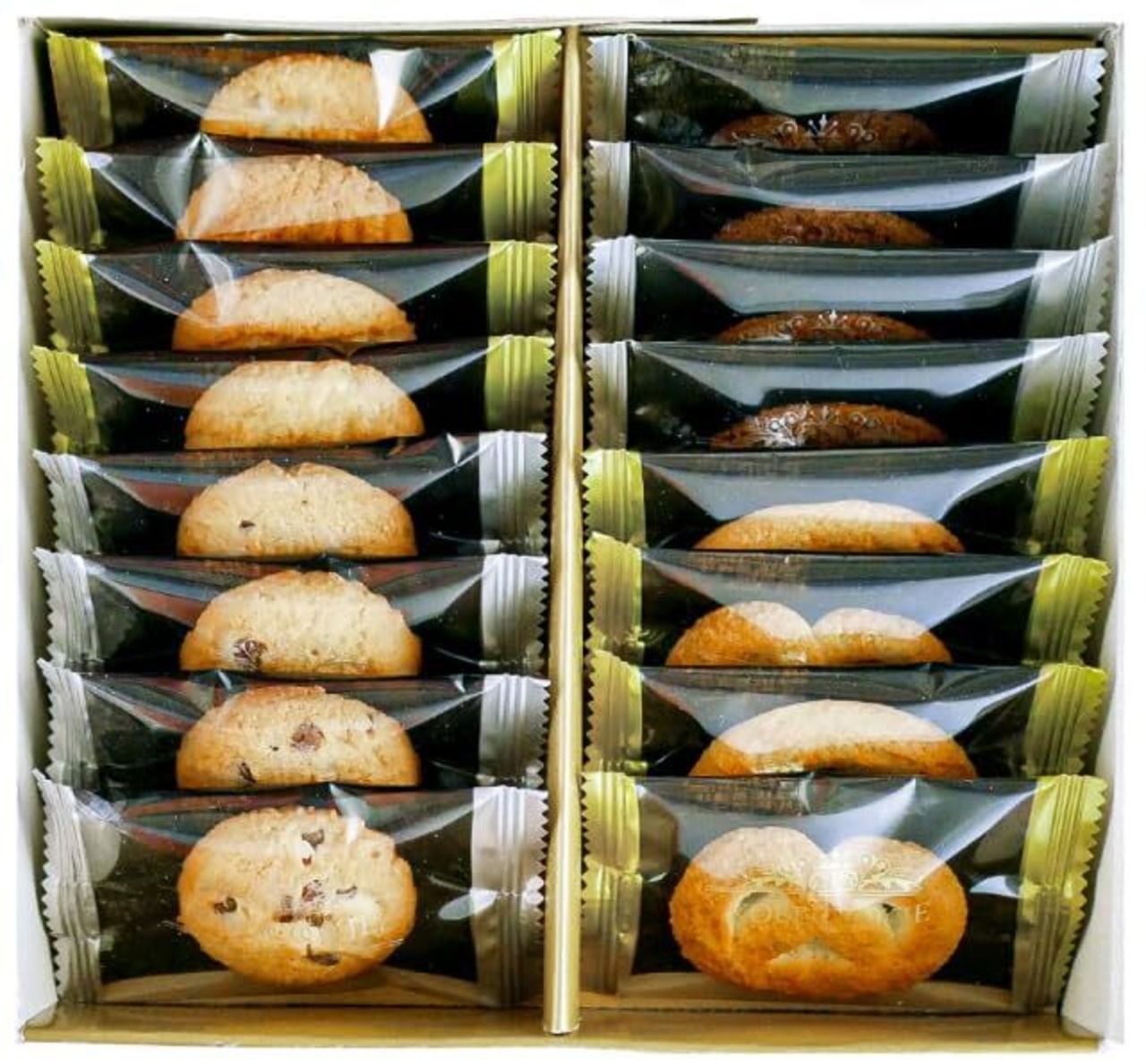 北海道産の小麦粉を使用したミルク、チョコチップ、メープル、ショコラの4種類の個包装されたクッキーをアソートしました。