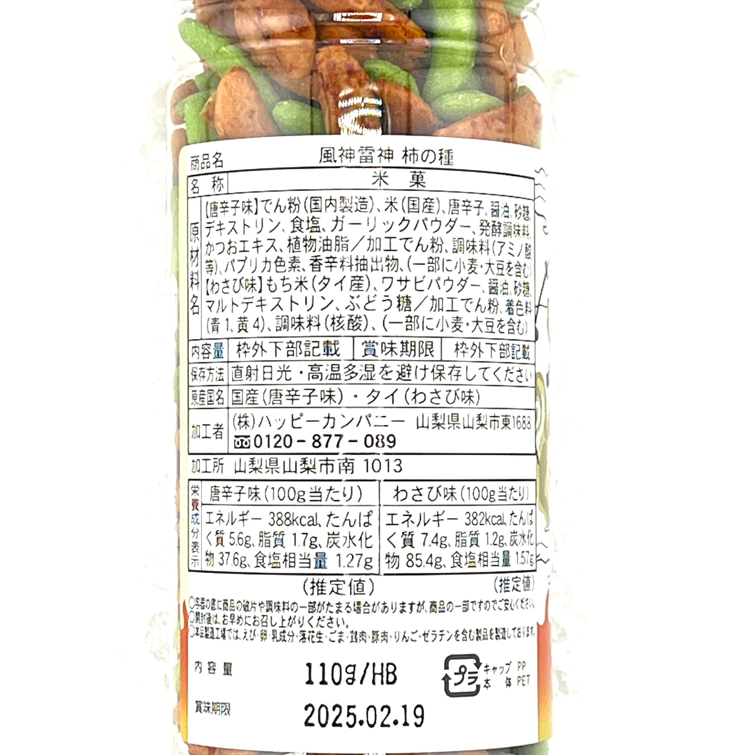 ハッピーカンパニー 激辛 おつまみ 柿の種 風神雷神 110g×1個(110g) セット 涙が出るほどツーンと辛いわさび ピリッとくる辛さの鷹の爪 激辛わさびの種 激辛柿の種鷹の爪 ミックス どちらも一緒に楽しめる欲張りな一品 米菓 業務用 スナック菓子 スナック お菓子 おやつ 珍味 ビールのお供 おみやげ
