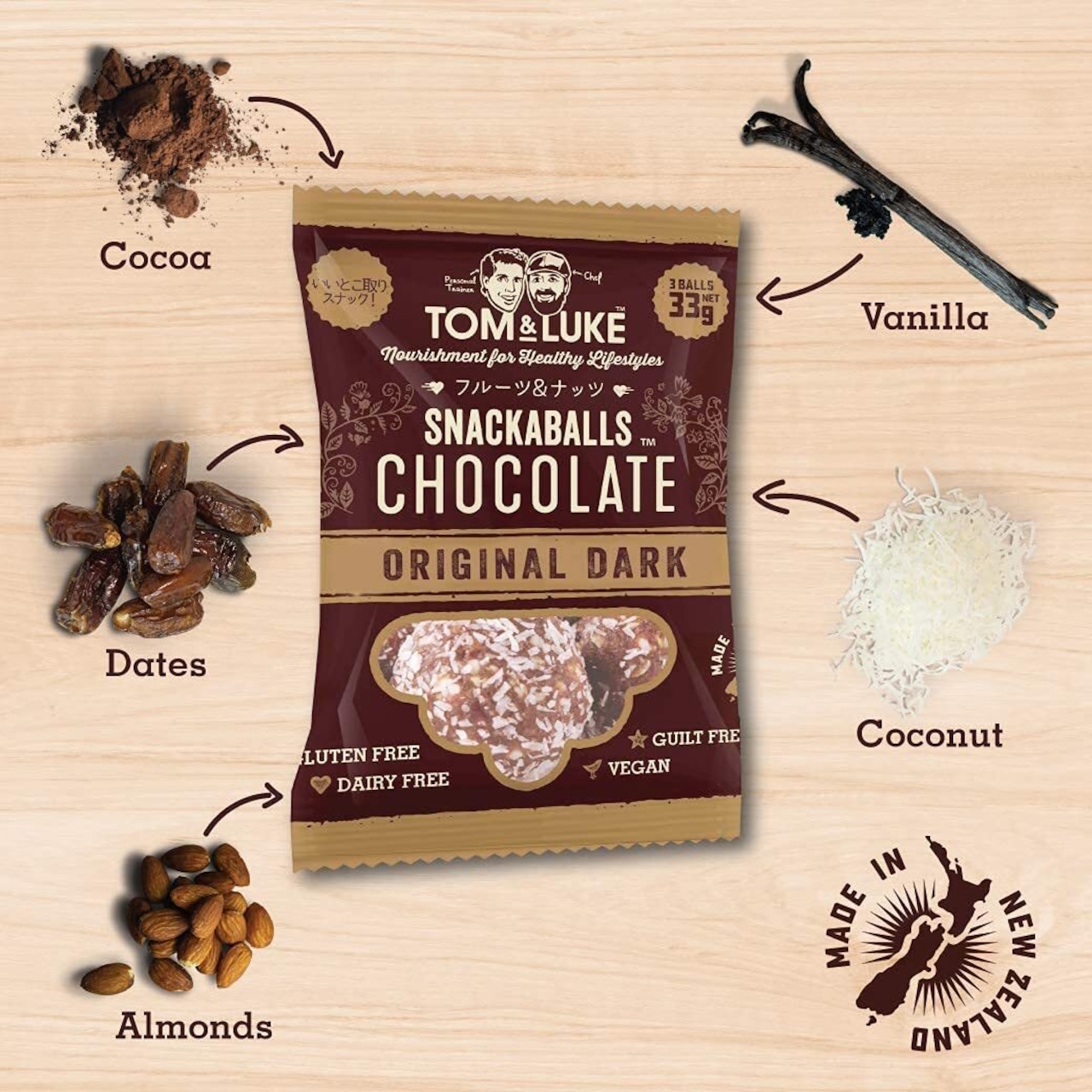 【トム&ルーク】フルーツ&ナッツ チョコレート スナックボール セット(33g X 12袋・オリジナルダーク) グルテンフリー、エナジーボール、砂糖不使用、乳製品不使用、卵不使用、ヘルシースナック、ビーガン、新感覚チョコレート、カバンの中にも、携帯食、ネコポス対応