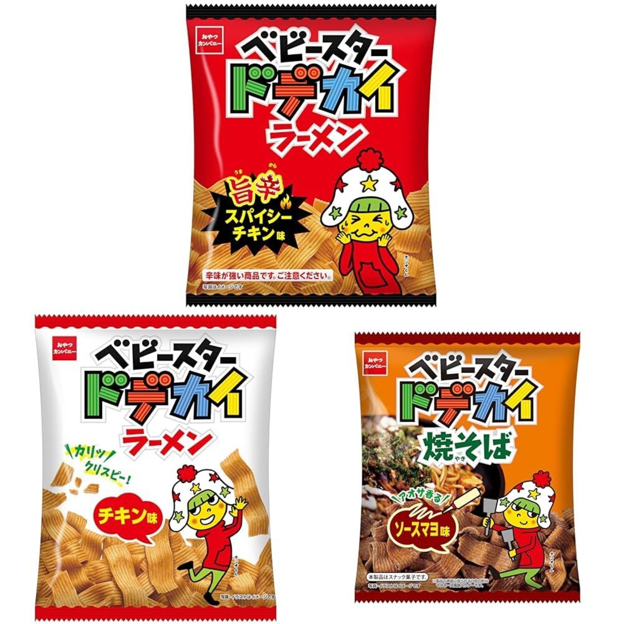【セット買い】【公式】おやつカンパニー ベビースター ドデカイラーメン 旨辛スパイシーチキン味 62g×12袋(幅広麺 つまみやすい スナック菓子) + ベビースター ドデカイラーメンチキン味 68g×12袋(幅広麺 つまみやすい スナック菓子) + ベビースター ドデカイ焼そばソースマヨ味 67g×12袋(幅広麺 つまみやすい 濃厚 スナック菓子)