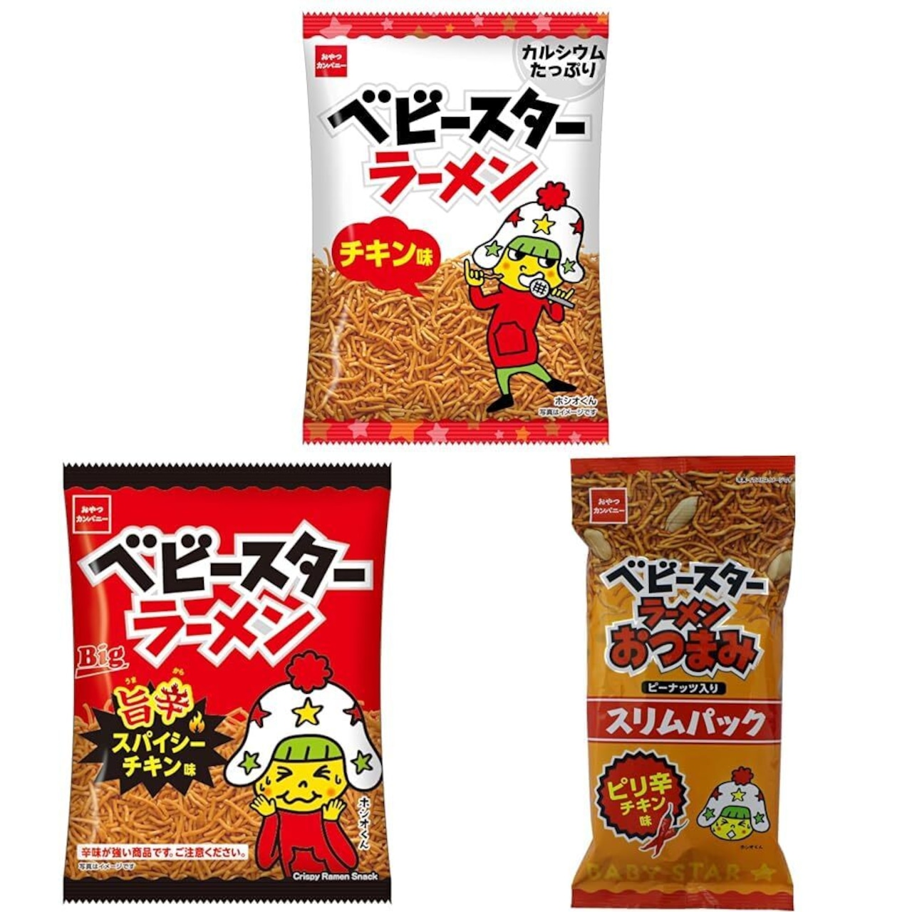 【セット買い】【公式】おやつカンパニー ベビースターラーメンチキン味 68g×12袋 (カルシウムたっぷり レシピ 料理に スナック菓子) + おやつカンパニー ベビースターラーメン 旨辛スパイシーチキン味 65g×12袋 + 【公式】おやつカンパニー ベビースター ラーメンおつまみ スリムパックピリ辛チキン味 52g×10袋(ピーナッツ 宅飲み 家飲み)
