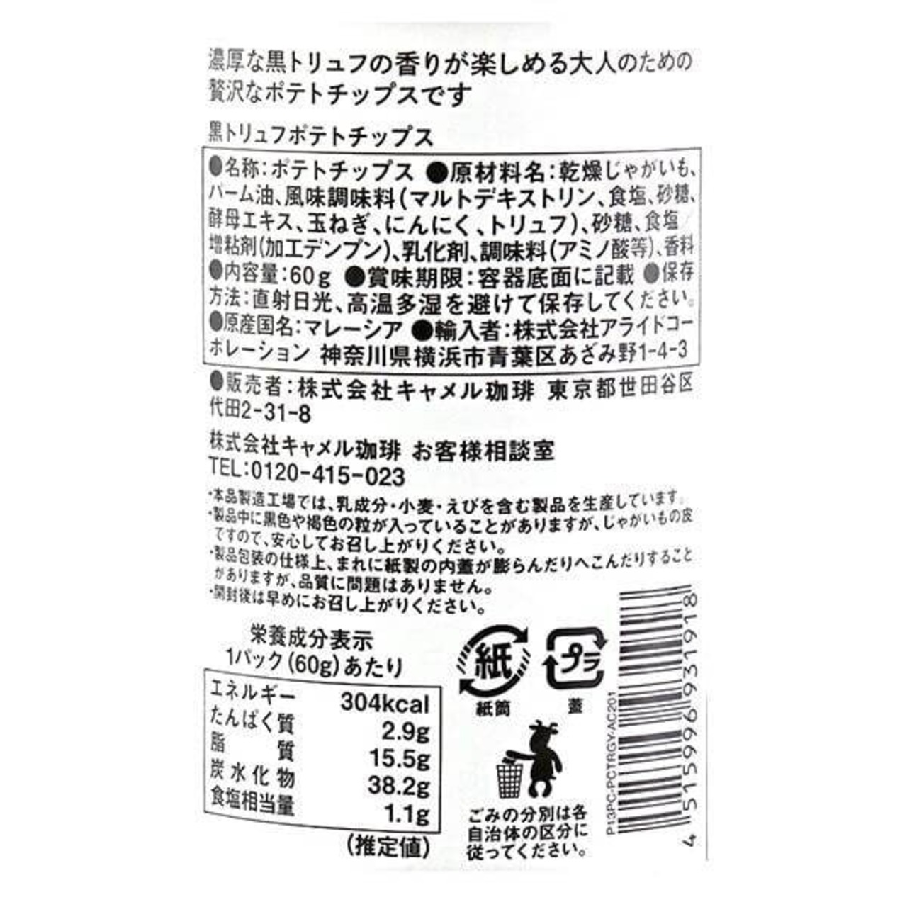 3個セット 黒トリュフ ポテトチップス 60g トリュフ風味 高級ポテチ おつまみ 輸入菓子