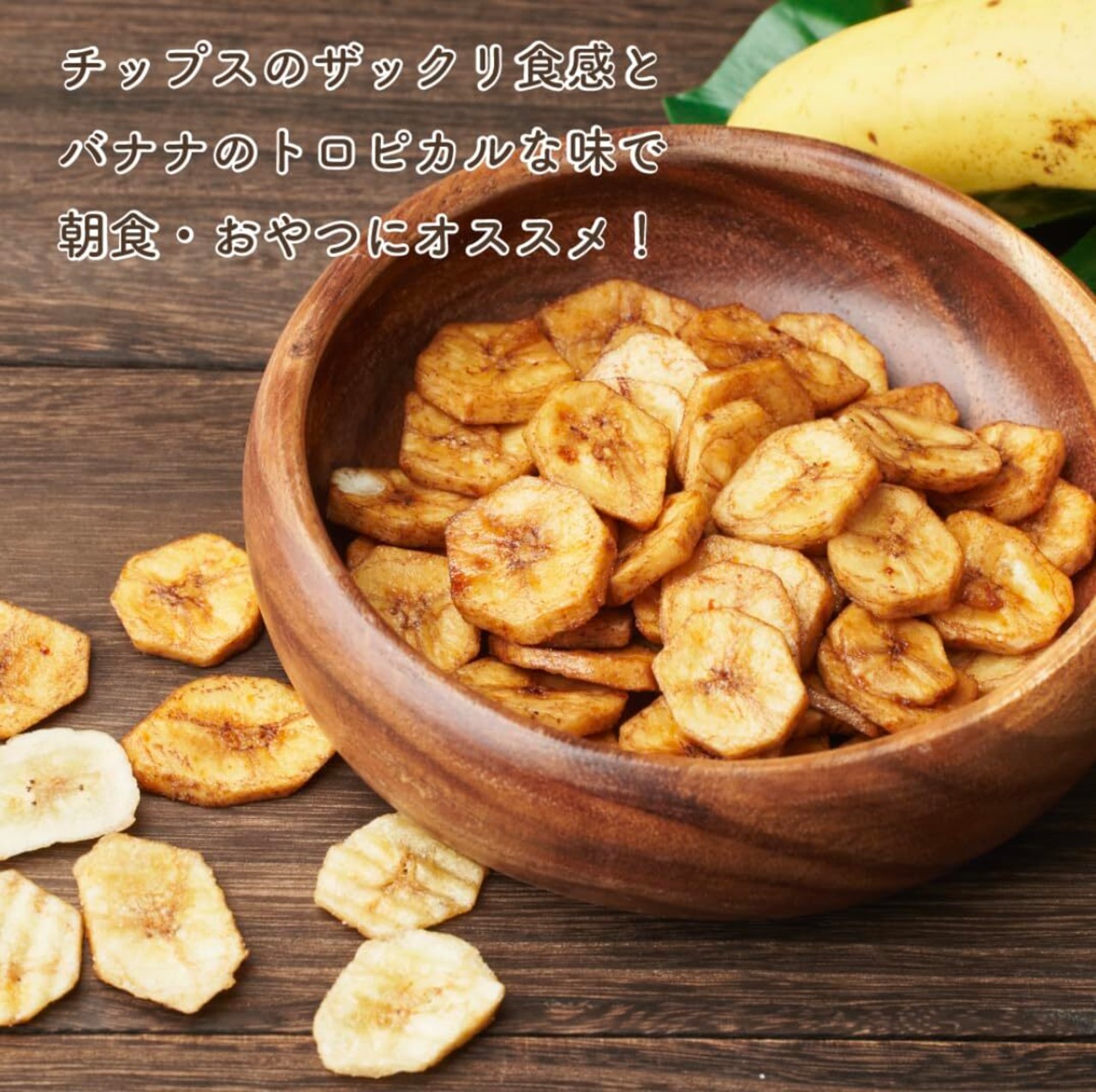 一口サイズの食べやすいバナナチップス