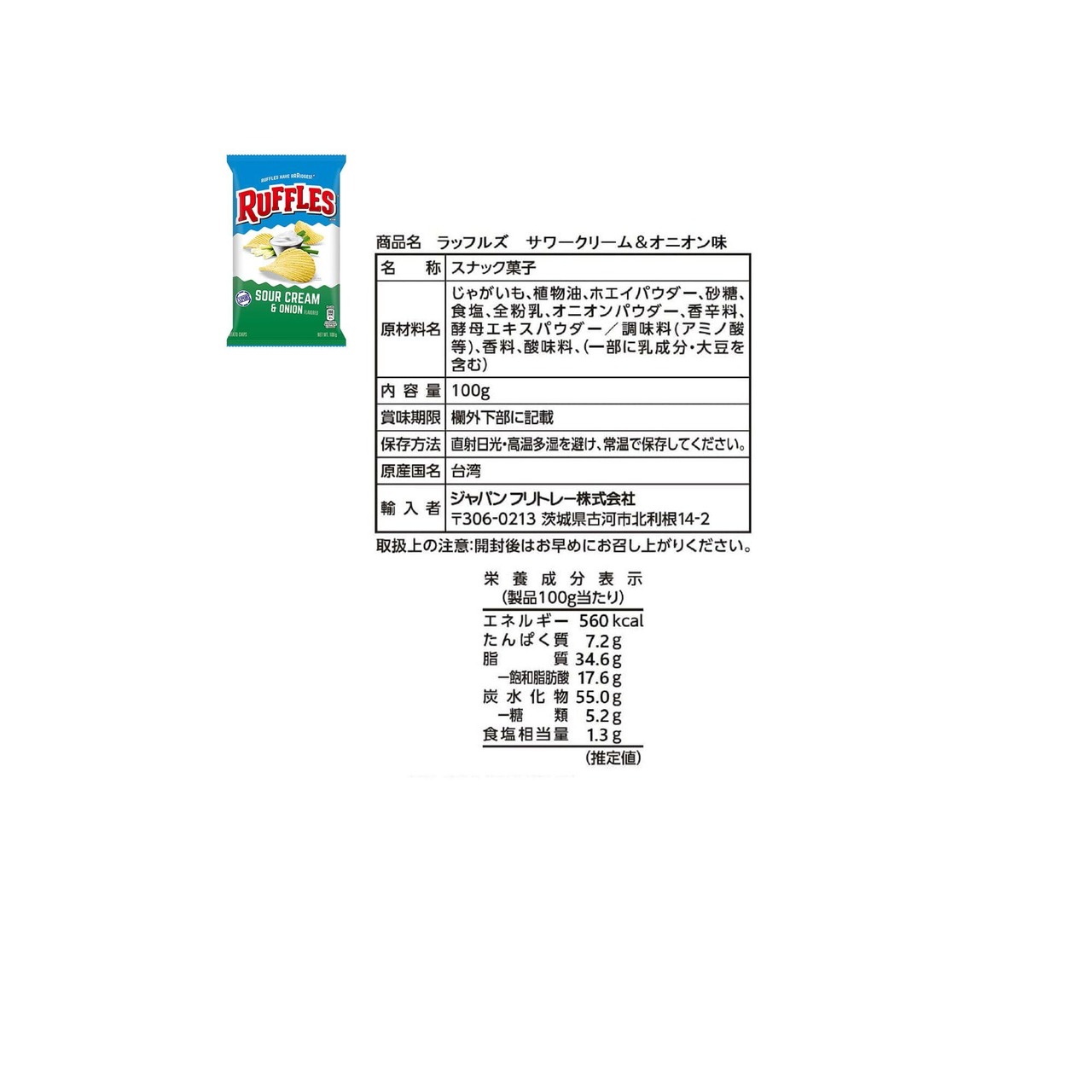 ラッフルズ サワークリームオニオン味 100g×3袋 (輸入)