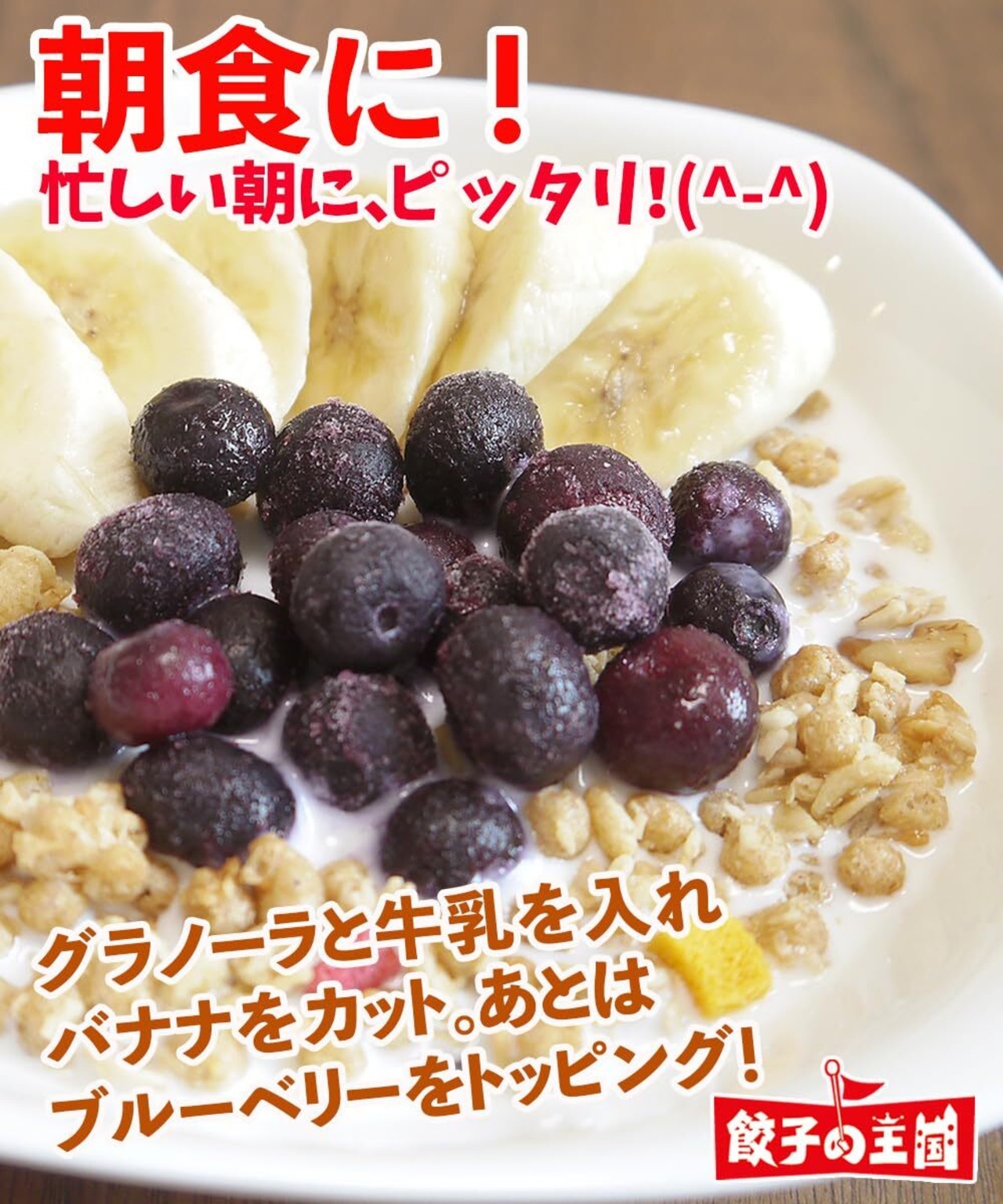 使用用途はいろいろ:冷凍ブルーベリーの用途は様々 ■ヨーグルト ■グラノーラ ■スムージー ■タルト(お菓子作り) ■デザート ■誕生日ケーキ