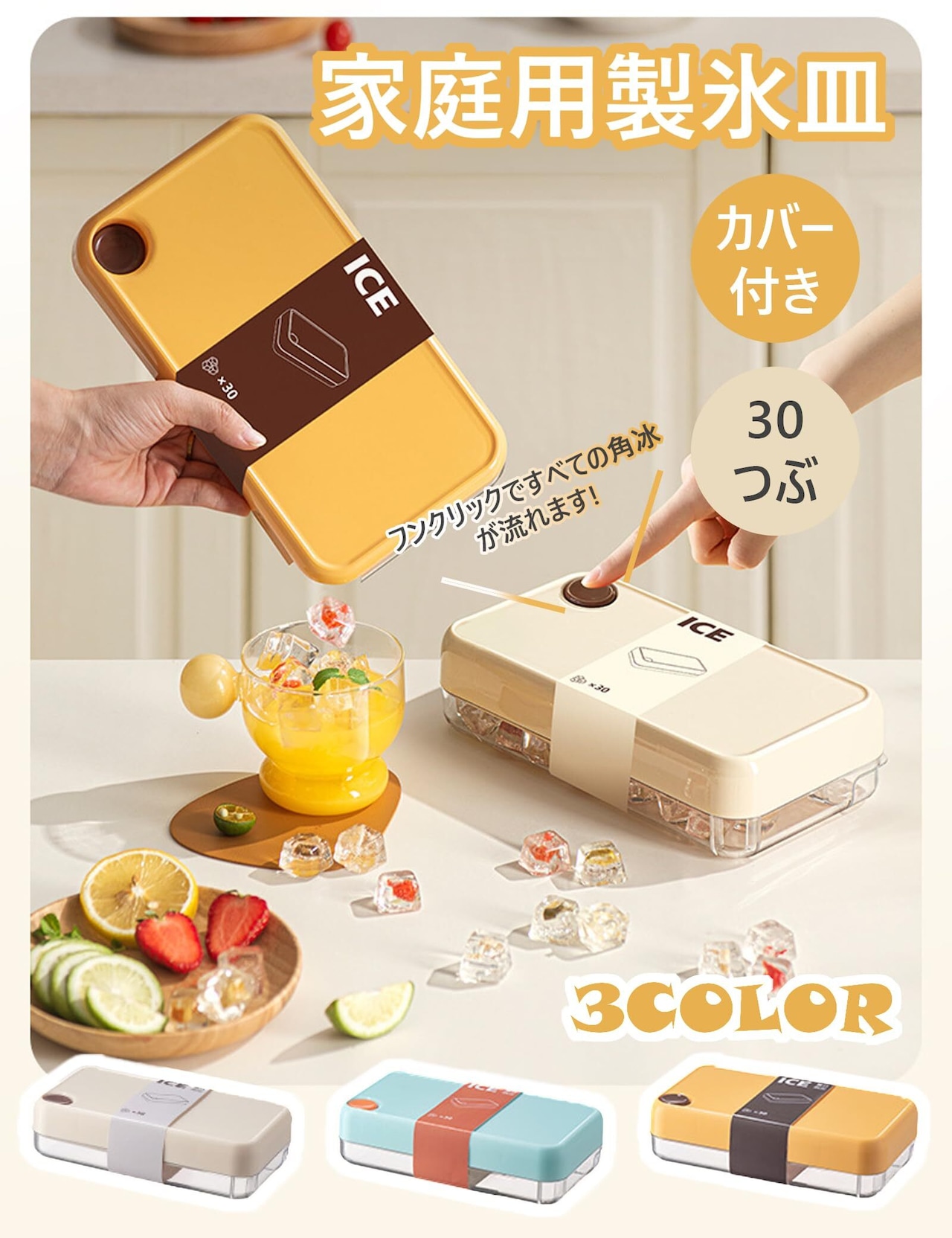 【氷を取り出しやすい】冷蔵庫用アイスキューブトレイは、革新的な金色の対角線で設計されています。凍らせたアイスキューブ型を貯氷箱に逆さまに置き、「プレス」と書かれた対角線の両側を手で軽く押すだけで、1秒以内にすべてのアイスキューブが取り出せます!