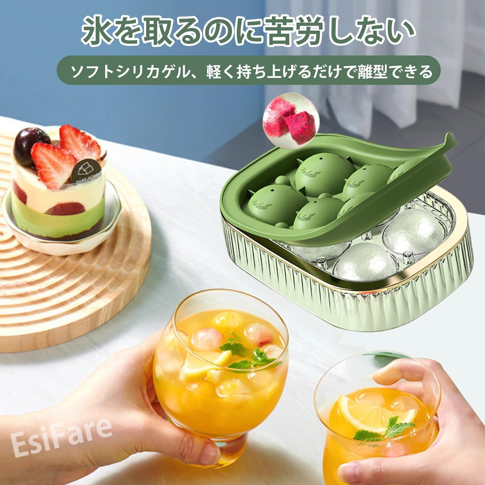 EsiFare 丸氷製氷器 製氷機 丸型 家庭用 氷つくる容器 製氷皿 蓋付き 大容量 ウイスキー 飲み物 ジュース お茶 家庭用 冷凍保存 グリーン 耐久性 取り外し簡単 お手入れ簡単 ファミリー レストラン カフェ バー ホテル 飲食店に最適 グリーン 直径約3cm 約13*9*3.5CM 約80g