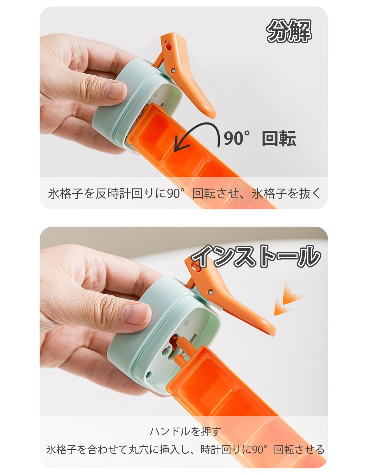 【ワンプッシュで簡単にアイスキューブをリリース】親指で45°の角度で押すだけで、力を入れずにグラスに直接アイスキューブをリリースできます!