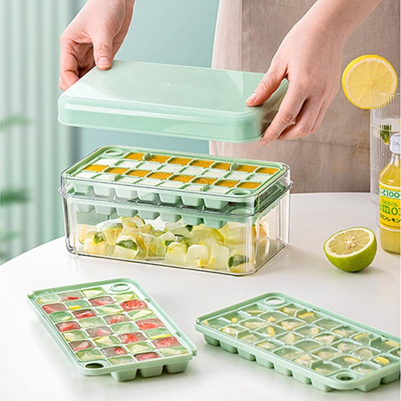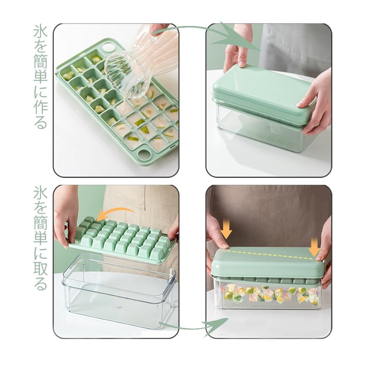 CHENLONB 製氷皿 氷作る容器 製氷機 冷凍保存 蓋付き 大容量 小分け 取出し簡単 耐久性 飲み物 ジュース お茶 お酒氷 家庭用 オフィス用 (グリーン)