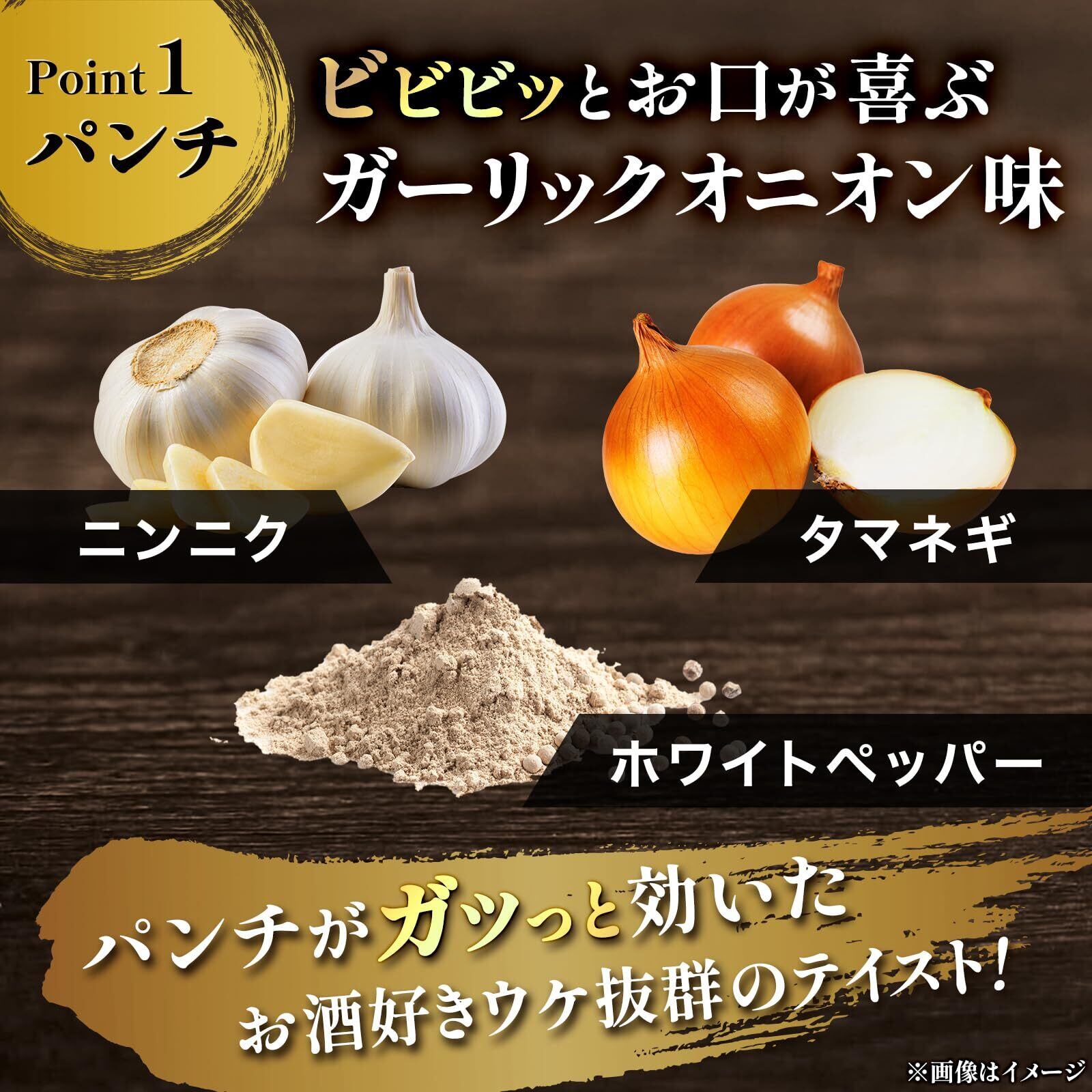 【ビビビっとお口が喜ぶ】脂の甘さが特徴の山形豚を100%使用。ガーリックオニオン味で仕上げました。ハイボールがググっと進みます。