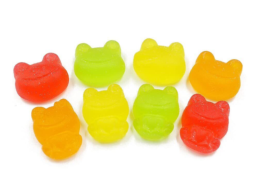 [サイズ:<カエルの顔型>(縦)約2cm (横)約2cm (厚さ)約1.2cm]2種類の愛らしいカエルの形のグミ。味はオレンジ味、イチゴ味、レモン味、メロン味の4種類です。個人での利用はもちろんのこと、小袋に入れてイベント・パーティー・ブライダルなどのプチギフトとして使ったり、オフィスでの休憩のアイテムとして使ったり、業務用アイテムとして使ったり、トッピングや製菓材料、デコレーション用として使ったり・・・様々なシーンでお使いいただいております。