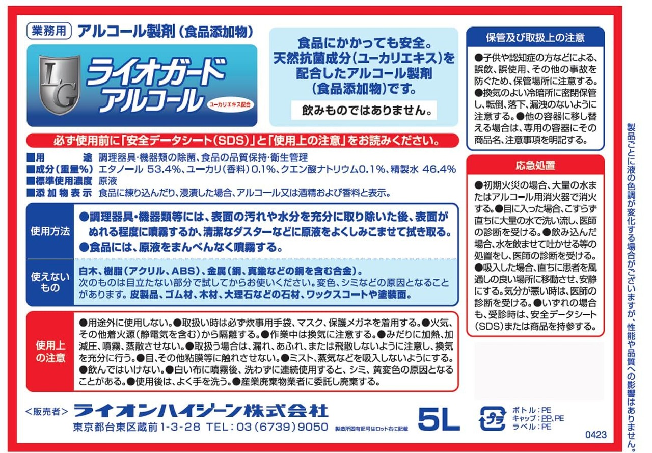 ライオン (LION) ライオガード アルコール 5L 61% 食添 ふきん付 【業務用 大容量】アルコール除菌 アルコール消毒液 詰め替え