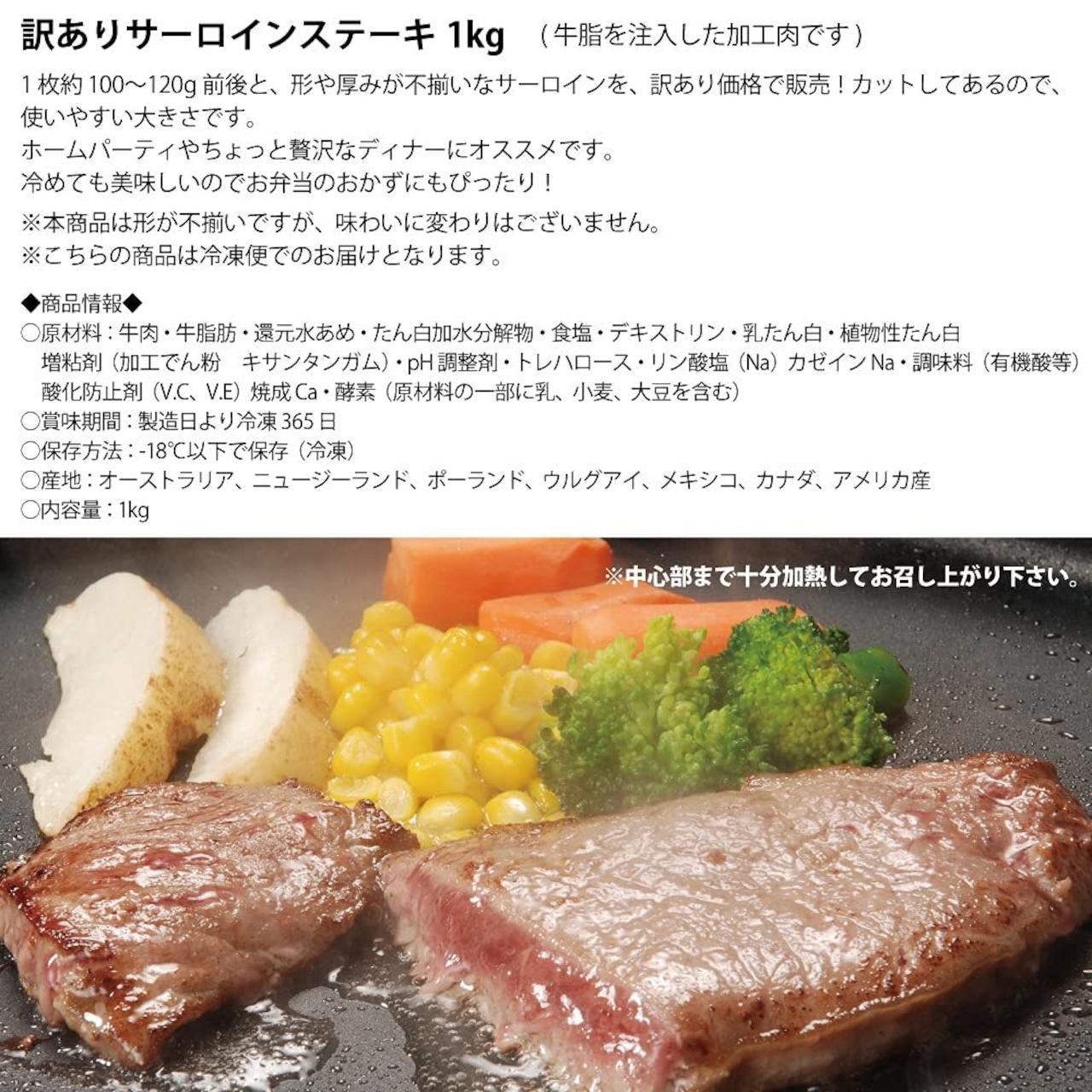 訳あり サーロインステーキ 1kg 形不揃い (加工牛肉) 1枚約100〜120g前後 アル・バトロス 形や厚みが不揃いなサーロイン