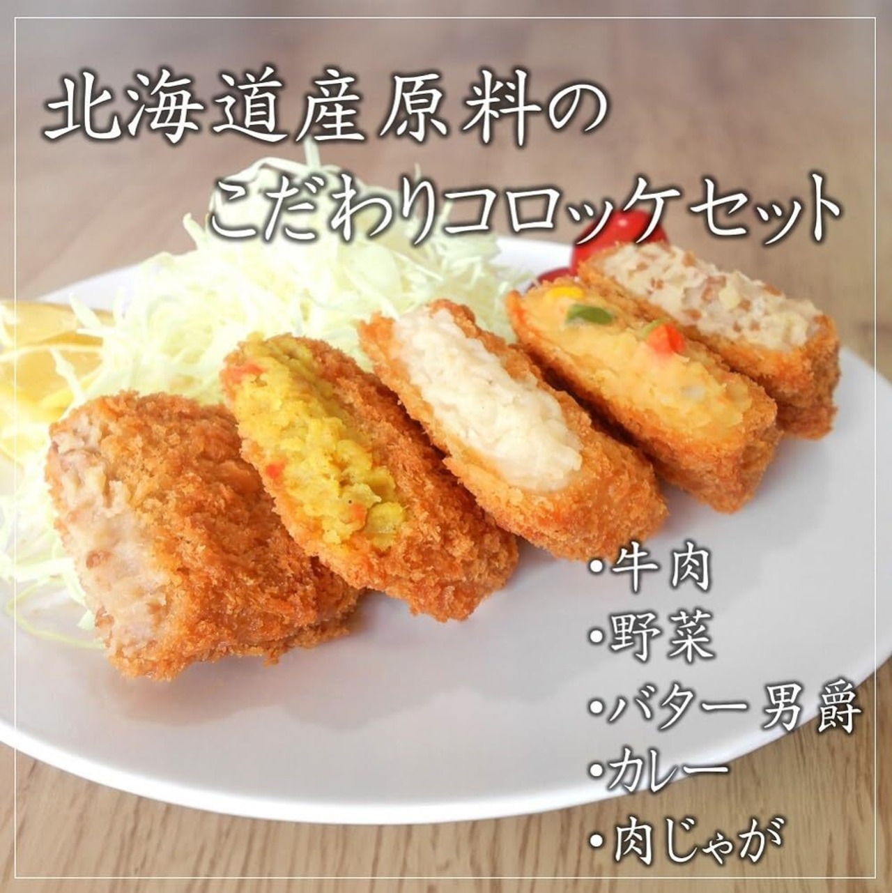 北海道産原料を北海道産小麦を使用した自家製パン粉で包んだまるごと北海道を堪能できるコロッケです。業務用で使用されている本格的な味わいがご家庭でお楽しみいただけます。人気のフレーバー5種類アソートセットです。好みの味を探してみては 調理方法 170~180℃の油で約6分揚げるだけ。出来立てホクホク家族みんなが笑顔になるコロッケです。ご家庭で一度に揚げられる個数によって油調時間は調整して下さい。