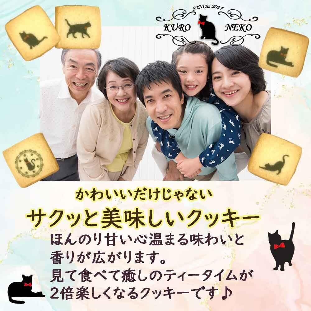 レトロでモダンな20種類のかわいい黒猫や肉球のイラストが、 クッキーに1枚1枚描かれたとっても可愛いクッキーです。