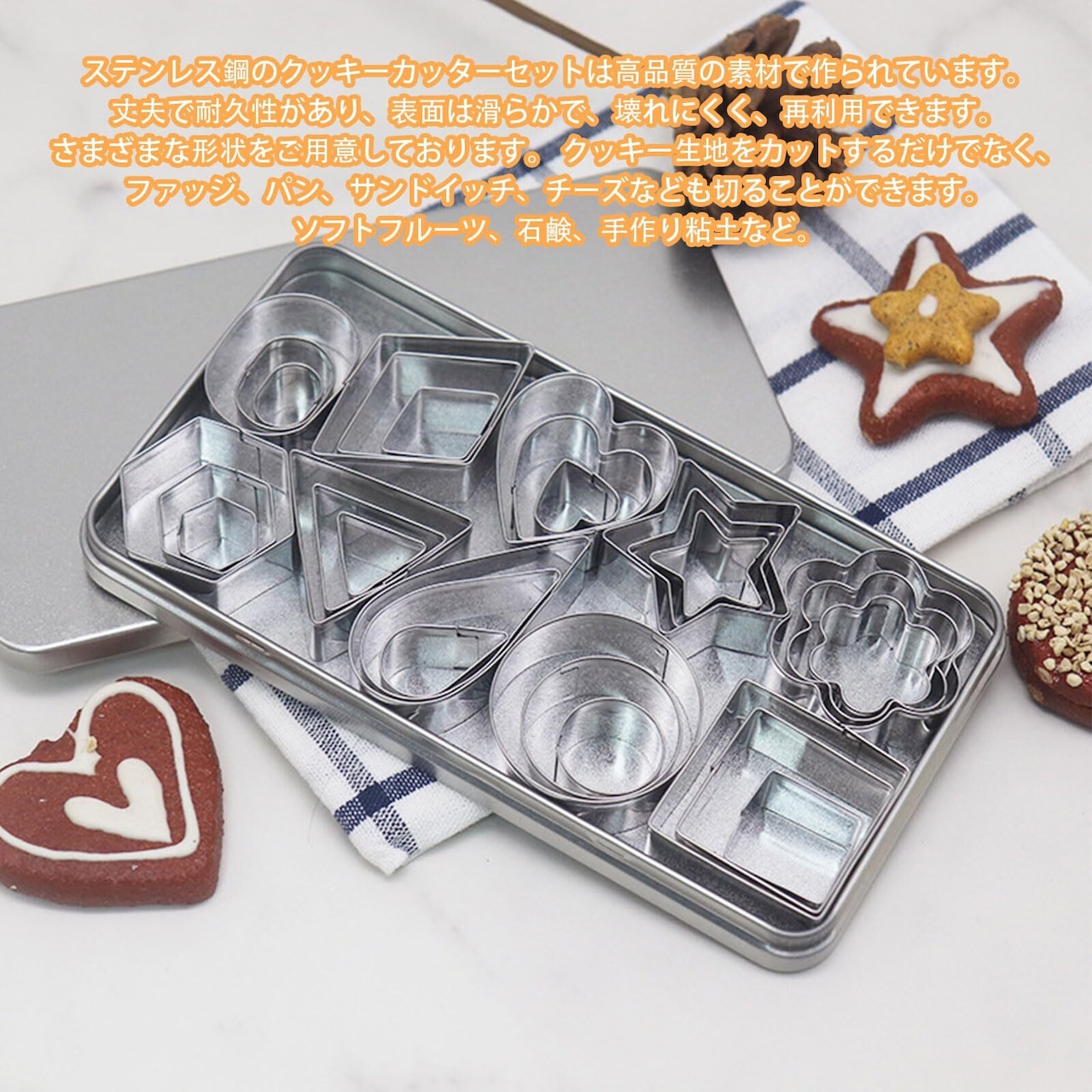 【高品質】クッキー型は高品質のステンレス鋼で作られており、毒性がなく、環境に優しく、錆びたり色褪せたりしにくいです。 耐久性があり、掃除が簡単で再利用可能です。