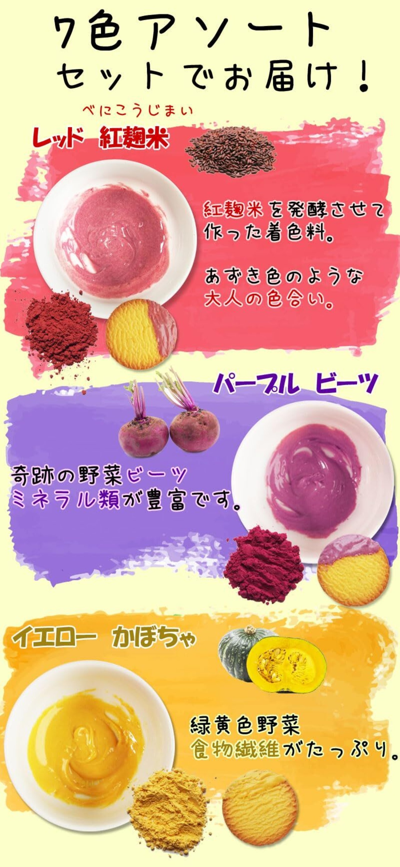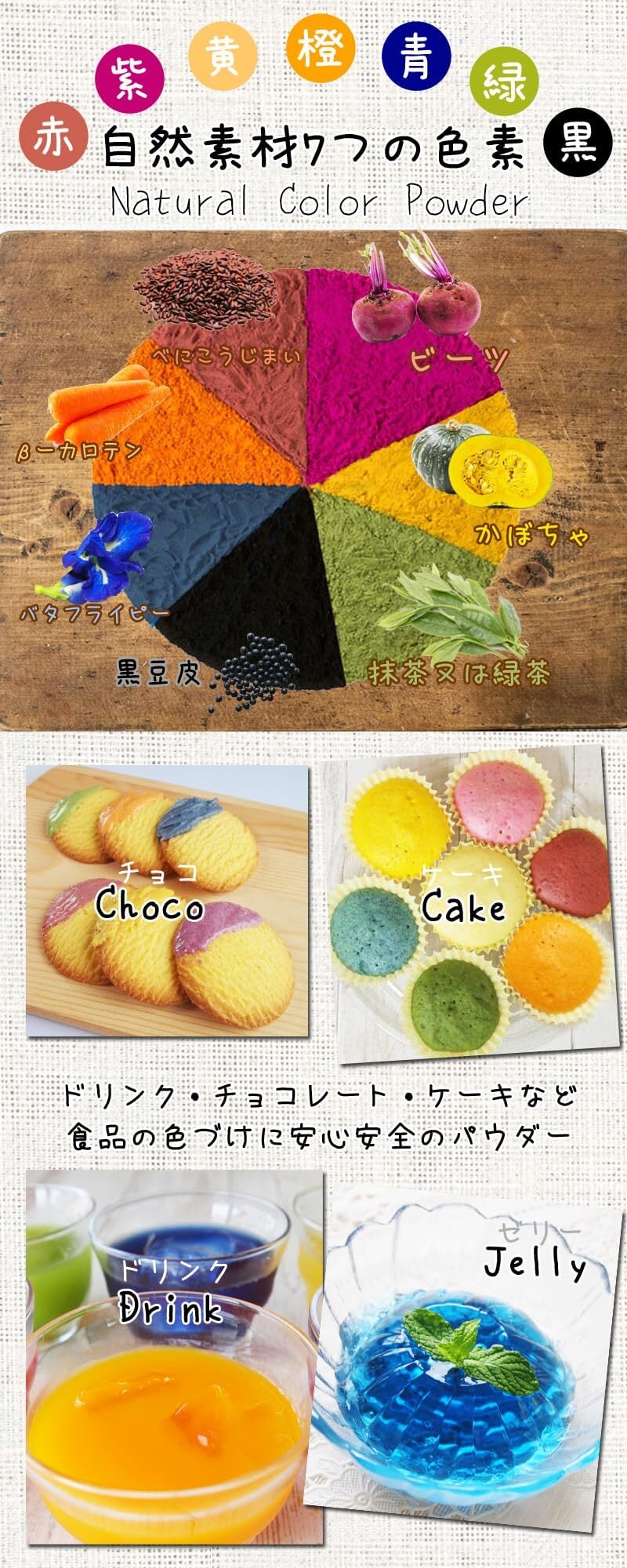 ナチュラルカラーパウダー 粉末食用色素 7色セット 赤 紫 黄 橙 青 緑 黒 着色料 食紅 製菓材料 食品 キャラ弁 デコレーション フードカラー お菓子作り バレンタインデー ホワイトデー