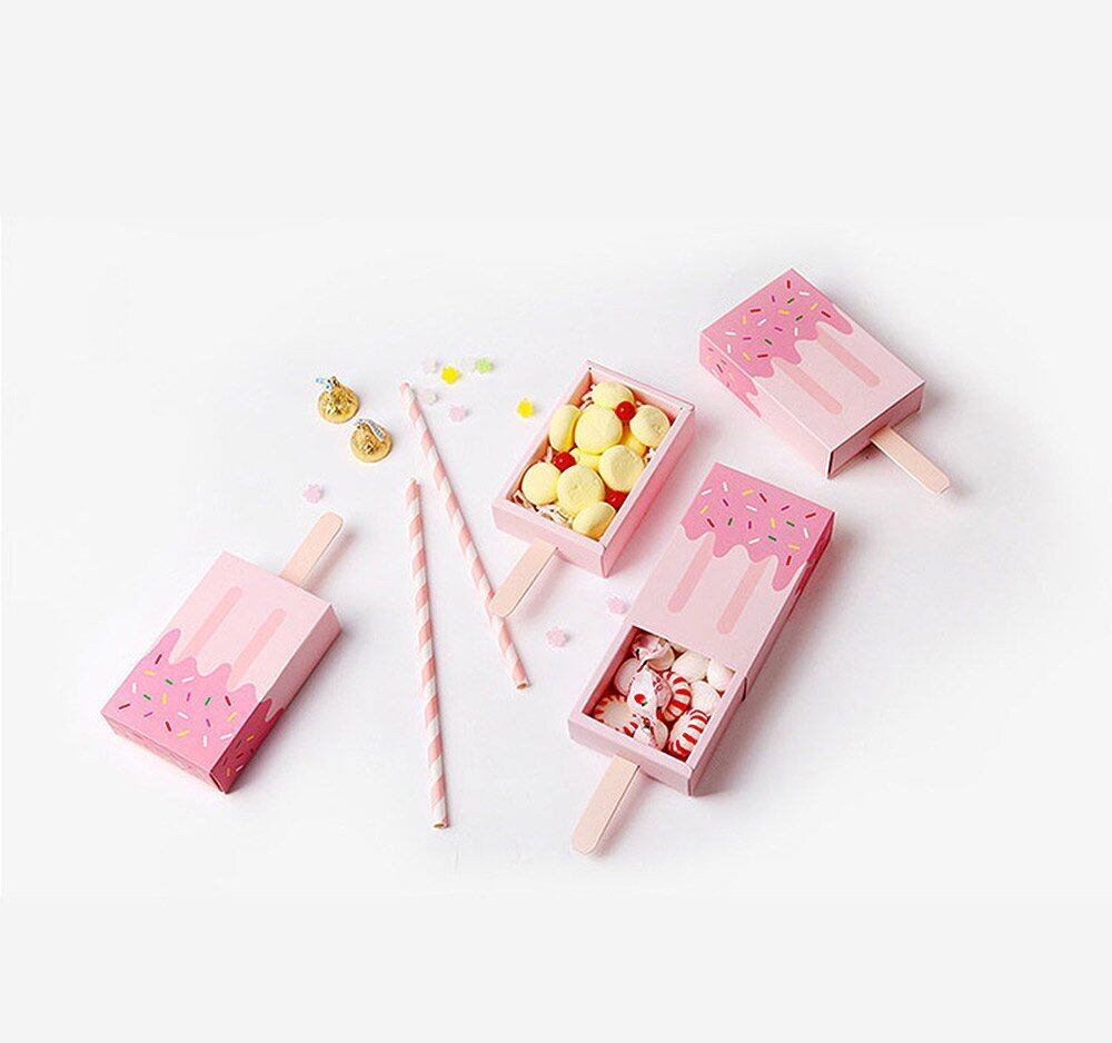 (moin moin) ラッピング ボックス 箱 アイスキャンディー 小型 お菓子 キャンディ 引き出し式 幅6.6cm×高さ10.1cm×奥行2.5cm (ストロベリー ピンク & ミント 10枚セット)