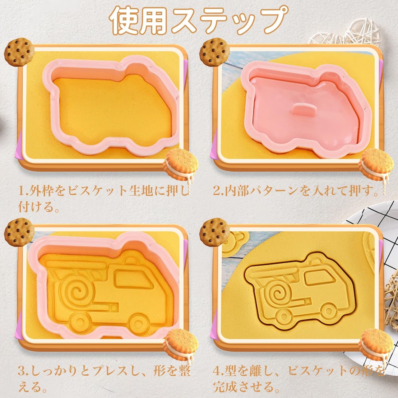 【乗り物 クッキー型】クッキー型は、ファッジ、チョコレートビスケット、チーズ、パンケーキなどのおいしいお菓子を作るのに理想的です。クッキー型を使用した後、食品はより魅力的で繊細でコンパクトに見えるようになります。操作が簡単で、型抜きも簡単なので、いろいろな種類のおいしいお菓子が簡単に作れます。