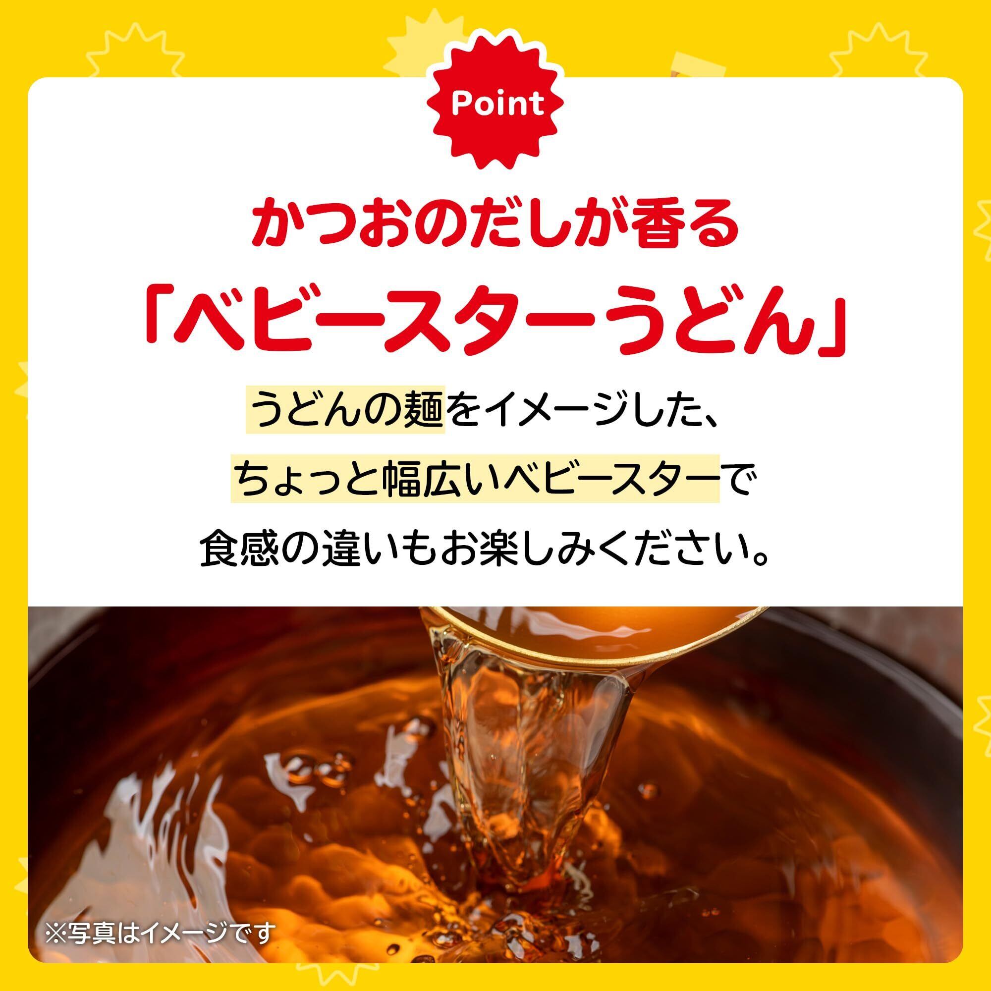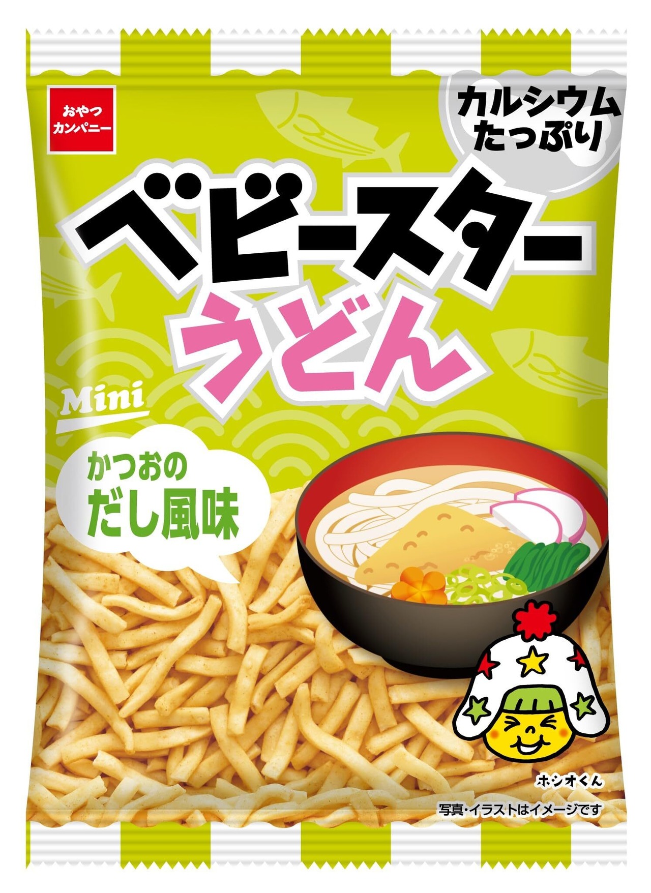うどんの麺をイメージした、ちょっと幅広いベビースターで食感の違いもお楽しみください。