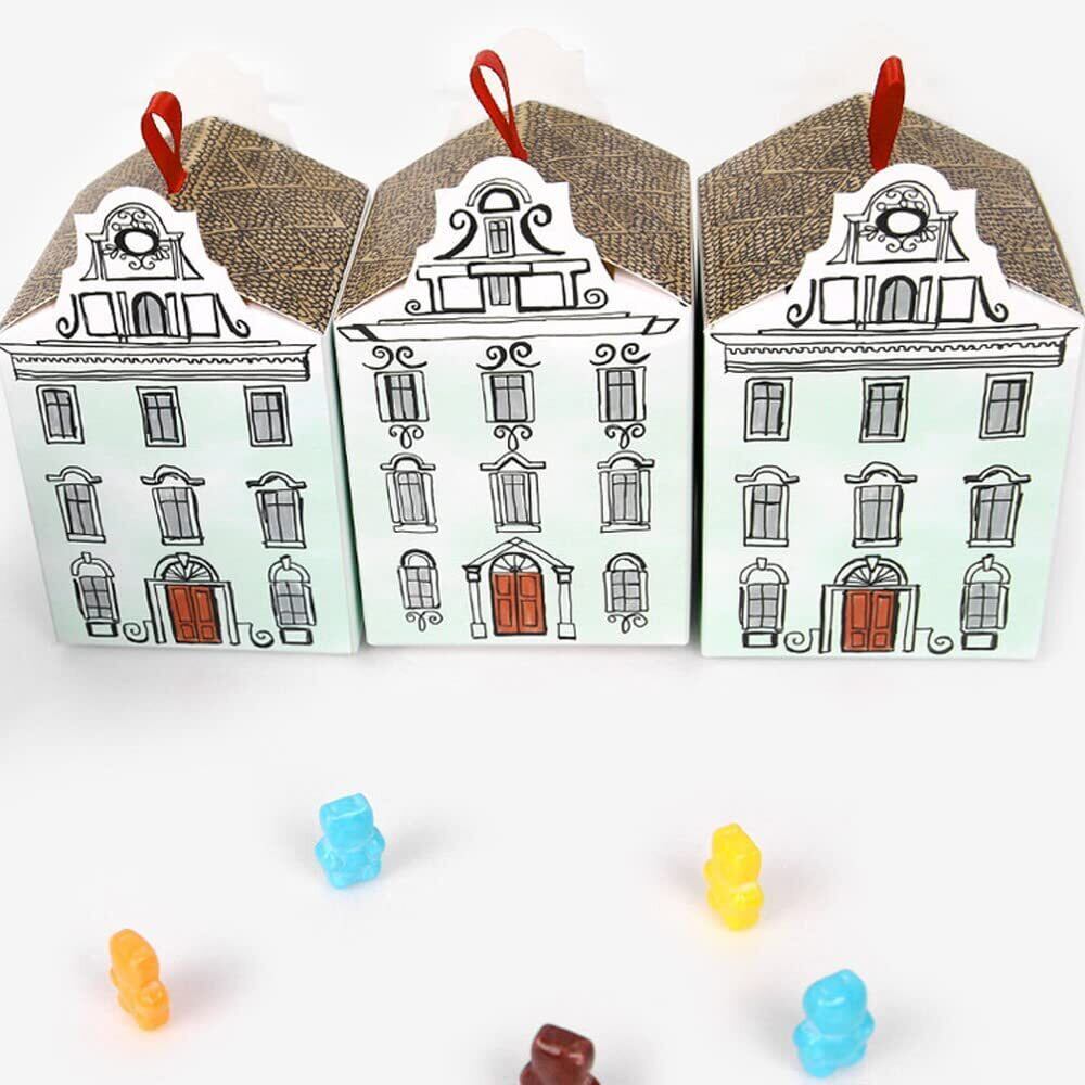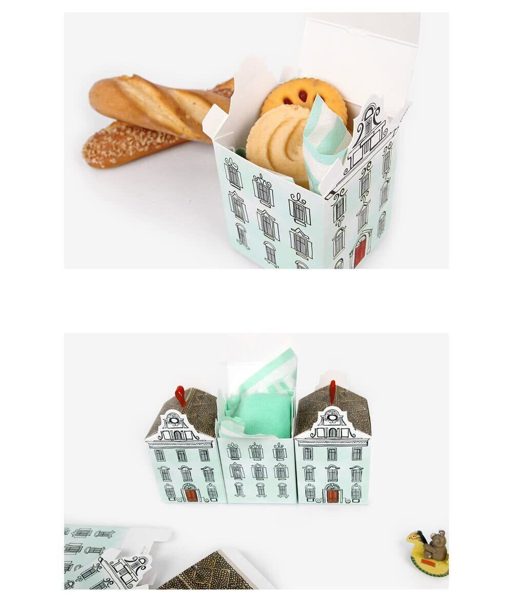 レトロ調のかわいい外観のビルのラッピングセット。並べると小さな街のようお菓子やアクセサリーなどの小物の梱包に最適◎グがセットなので、手軽にこだわったラッピングができるのが嬉しい