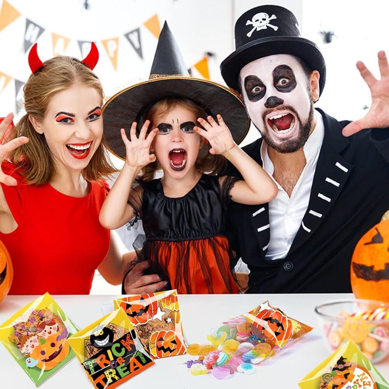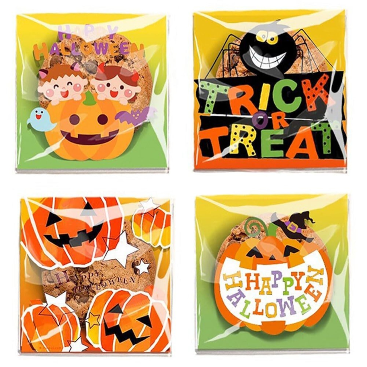 Moeagel ハロウィン キャンディーバッグ 4種類100枚セット シール袋 可愛い お菓子袋 ギフトバッグ 10*10+3CM 使いやすい ハロウィーン お菓子袋 かぼちゃ 幽霊 蜘蛛 ハロウィンの雰囲気満々 お菓子小分け ラッピング袋 お店用 パーティー 業務用 (4種類-100枚入り)