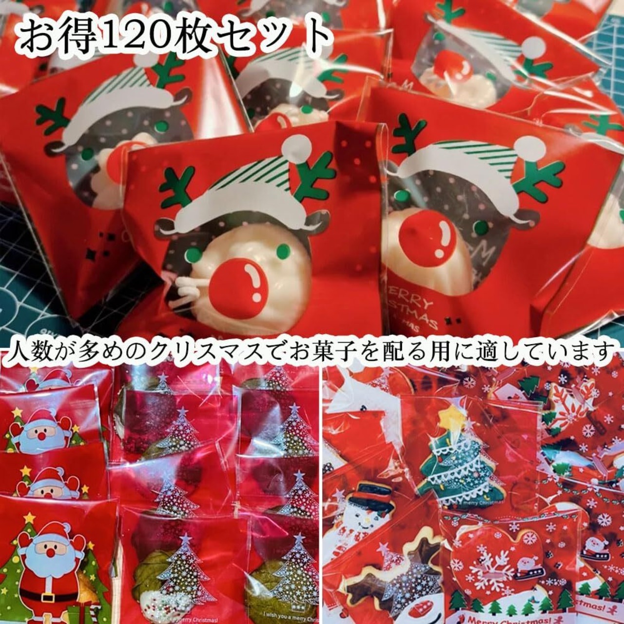 お得120枚セット:120枚でたっぷり入数なので人数が多めのクリスマスでお菓子を配る用に適しています。